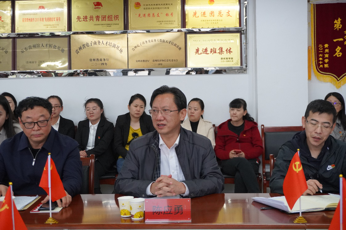 为贯彻落实学校“关于认真组织学习《习近平谈治国理政》(第三卷)通知要求和中国共产党贵州商学院第一次代表大会精神”, 9月29日下午,计算机与信息工程学院教师第一党支部开展以“新时代要有新气象,更要有新作为”为题的主题党日观摩活动。活动邀请到党委组织部、经济学院、旅游管理学院等部门同志参加,学院党委副书记陈应勇、纪委书记田慧林出席,计算机与信息工程学院全体党员参加本次活动。活动由计算机与信息工程学院教师第一党支书记主持。
