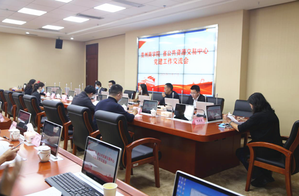 党员老师们实地参观了省公共资源交易中心交易服务大厅、数字见证中心、开标区、远程异地评审调度中心、数据调度中心等,考察了公共资源交易项目运行和公共资源交易云平台、大数据应用服务平台、综合金融服务平台运行情况,并召开“贵州商学院、省公共资源交易中心党建工作交流座谈会”,就双方建设发展和党建工作情况进行了充分交流。