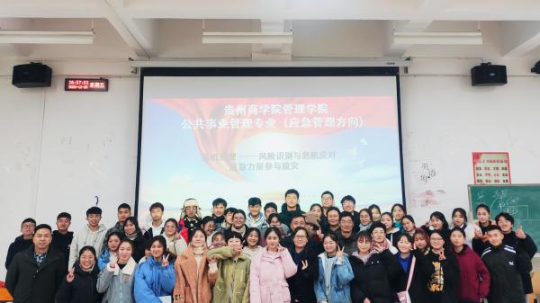 2020年12月25日下午2:00,贵州商学院管理学院在3J202进行了“危机管理-风险识别与危机应对(应急力量与参与救灾)主题讲座”。此次讲座特邀贵州昊乾企业综合减防灾中心曾亮教授主讲,我院新开设本科专业公共事业管理20-1班及其他20级各专业班级代表参加此次讲座。本次讲座是对公共事业管理专业的塑造与增加同学们对应急管理的了解以及对在事故中如何运用应急措施的知识讲解。