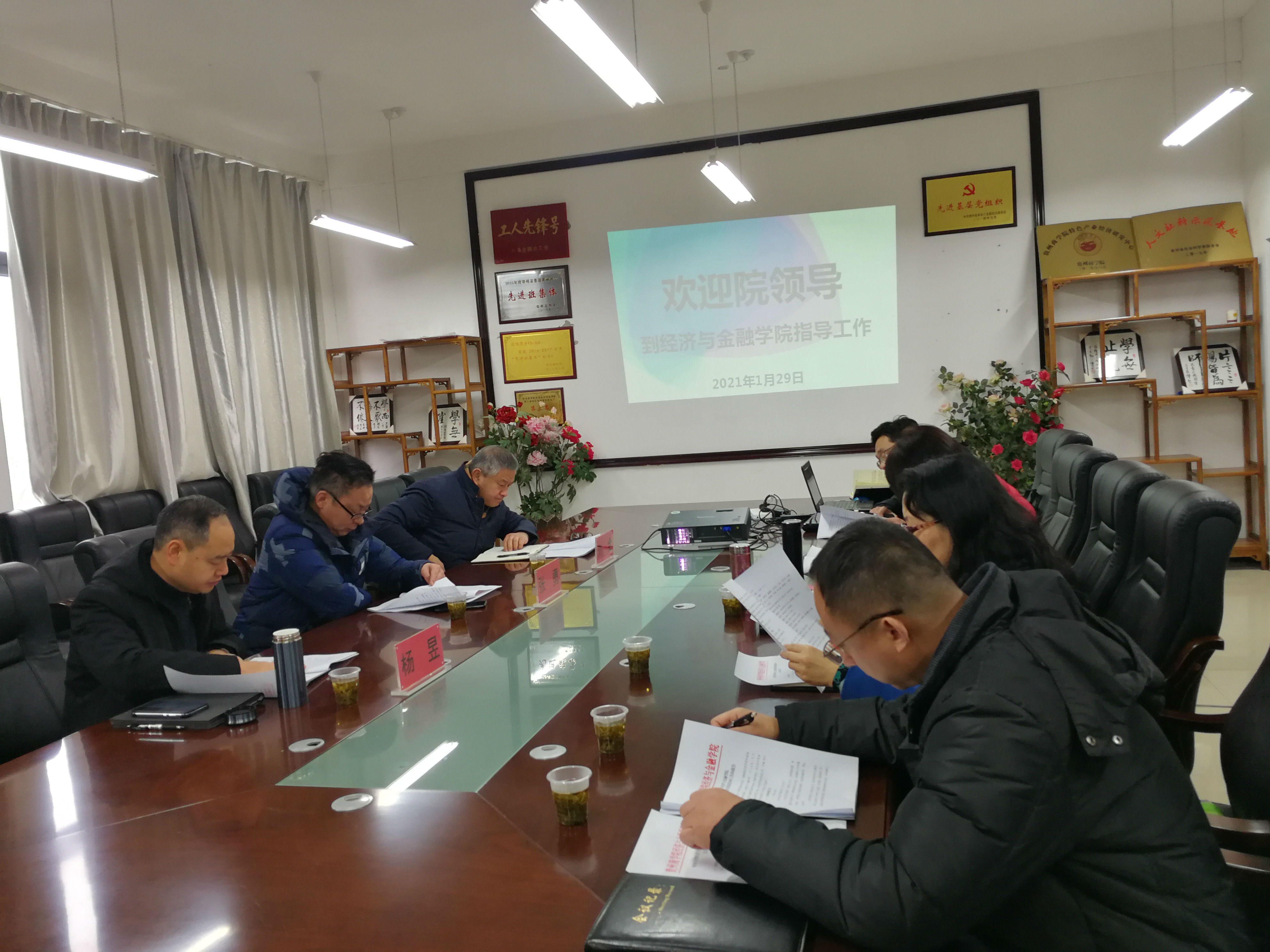 2021年1月29日上午,张勇副院长、杨昱副院长到经济与金融学院调研学院成立以来相关工作的推进情况,后勤处处长刘全陪同调研。