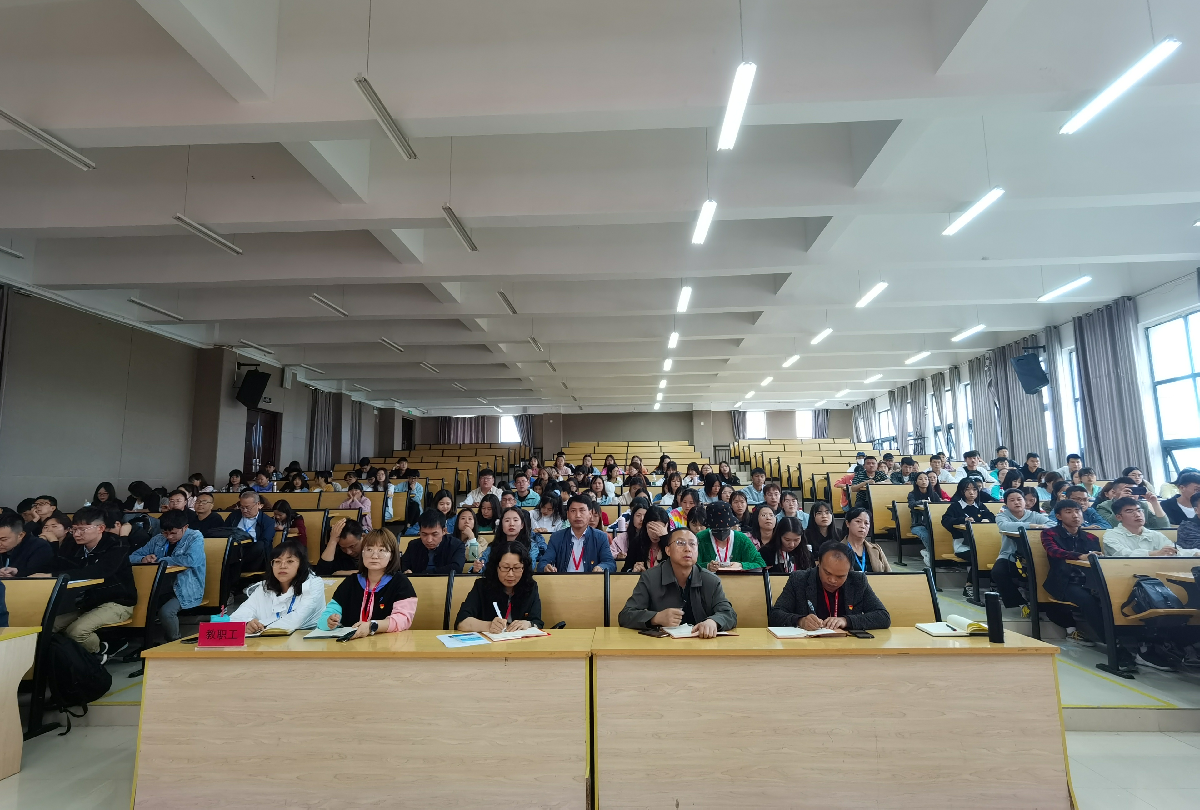 庞郁华同志以自己学习四史的所思所悟,从“坚定信念、永葆先进 撑起强大精神支柱”、“实事求是、与时俱进 筑牢思想基石”、“百折不挠、勇于纠错 展现高超政治智慧”、“牢记宗旨、执政为民 坚守初心矢志不移”四个部分与全体师生作了分享。庞郁华同志在党课中引经据典,将马克思主义的经典著作《共产党宣言》、《资本论》等著作贯穿到党课中,又历史与现实相结合,穿插了红军长征、四渡赤水等大量史实案例,同时还讲述了贵州石阡县困牛山红军跳崖的悲壮故事,以及中共贵州省工作委员会第一任书记林青英勇就义等等革命战争故事和英雄人物事迹。