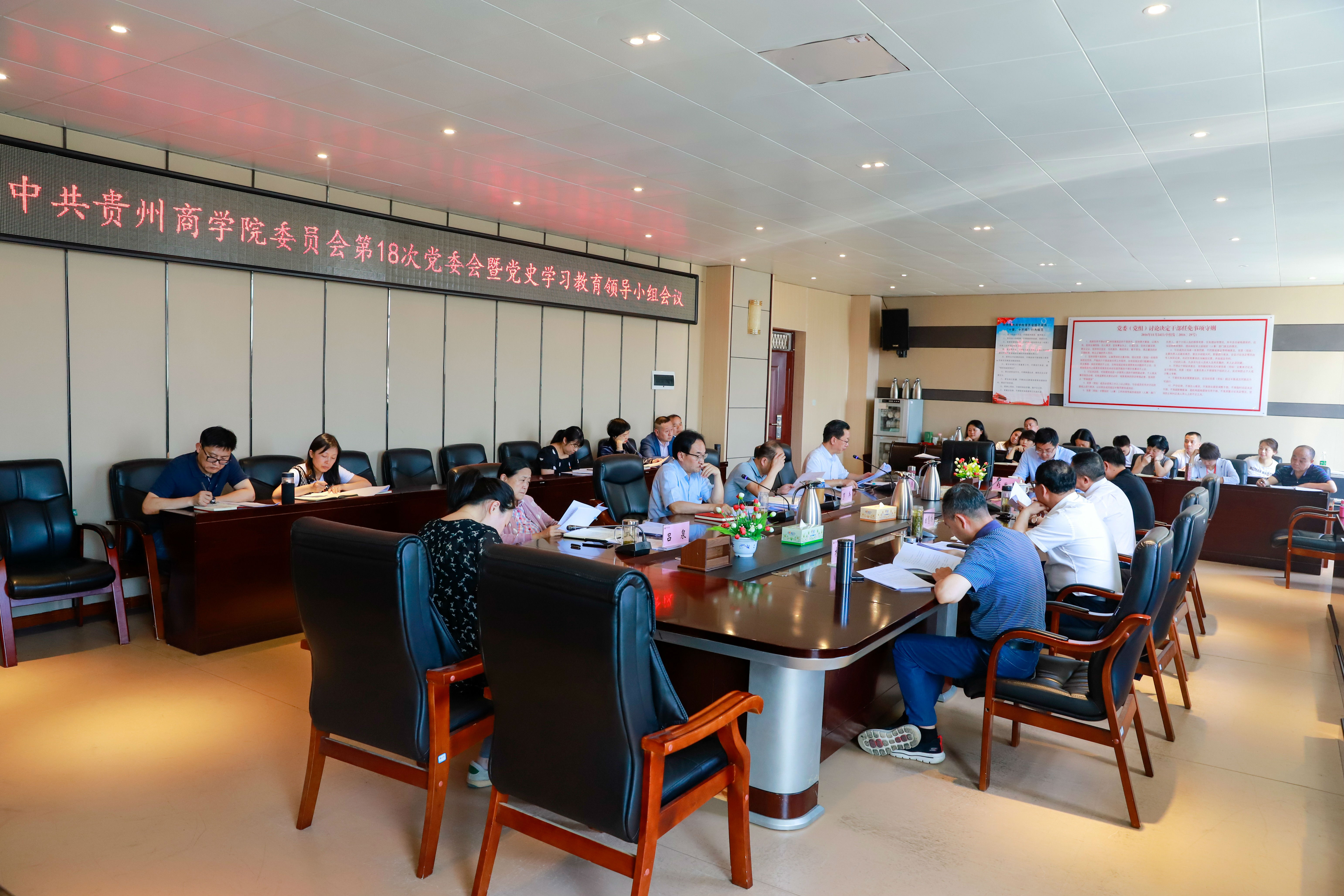 会议审议通过《中共贵州商学院党委中心组党史学习教育专题学习研讨方案》《贵州商学院关于开展党史学习教育专题宣讲的工作方案》《贵州商学院开展党史学习教育专题调研工作方案》《关于在党史学习教育中深入开展专题党课的工作安排》《贵州商学院党史学习教育系列专题讲座安排表》。