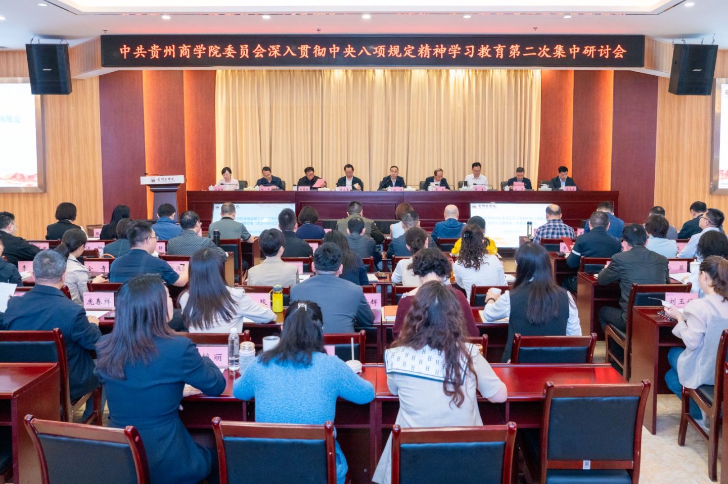 为锲而不舍落实中央八项规定精神,推动学习教育走深走实见行见效,6月5日上午,贵州商学院在静心湖会议中心报告厅召开深入贯彻中央八项规定精神学习教育第二次集中研讨会。党委书记汤健主持会议并讲话。党委副书记、校长罗兵,党委副书记陈应勇、张勇,纪委书记、监察专员田慧林,副校长杨昱、张军、苟先茂、成蕴琳出席会议。