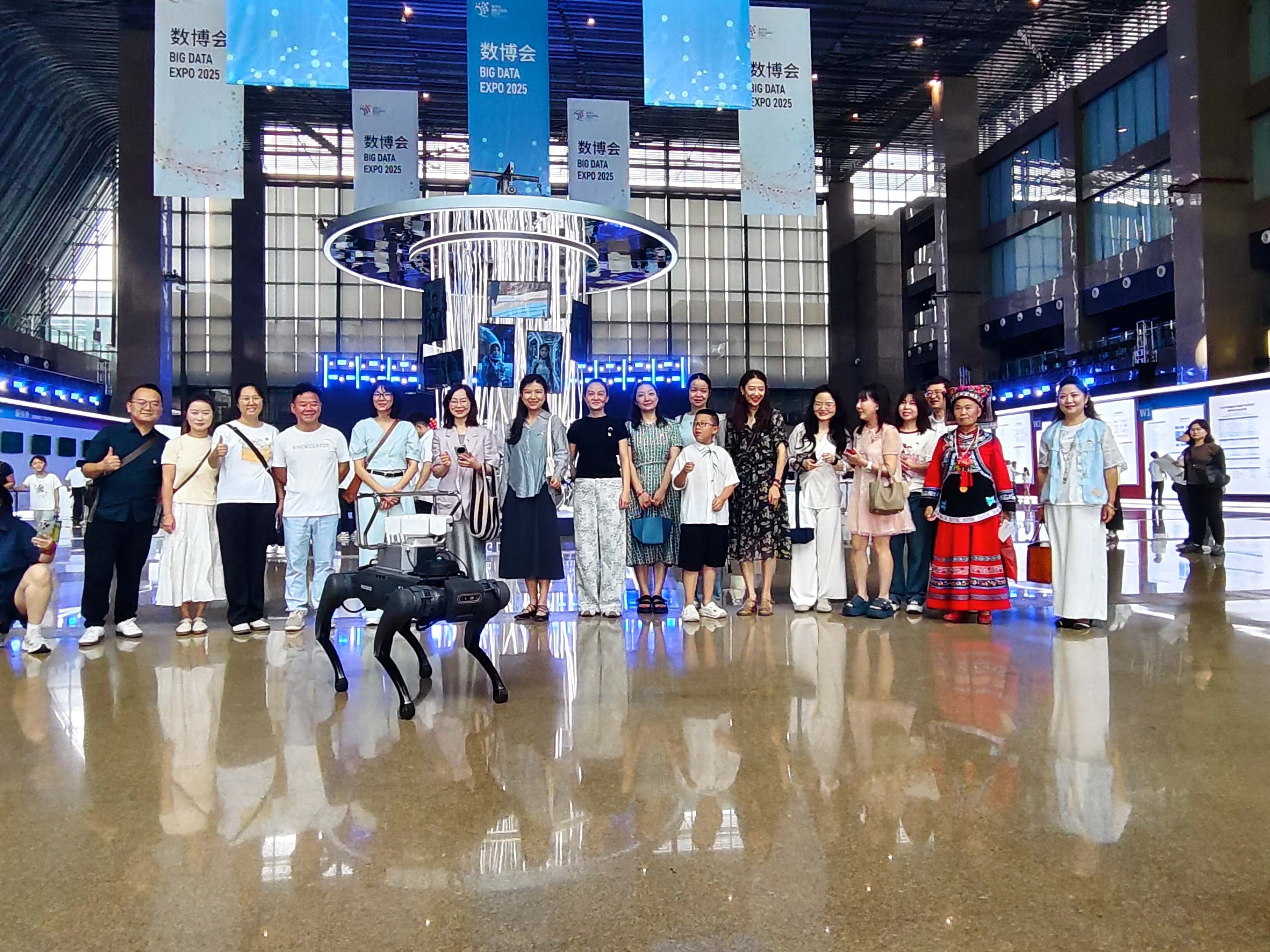 为深入贯彻落实习近平新时代中国特色社会主义思想,积极响应国家关于数字经济发展的战略部署,推动高校党建工作与教育教学、科技创新深度融合,提升教师队伍对数字化时代的认知与应用能力。8月29日上午,贵州商学院国际教育学院(大学外语教学部)教师党支部组织全体党员教师、入党积极分子和博士教师前往贵阳国际会议展览中心,参观了备受瞩目的2025中国国际大数据产业博览会(以下简称“2025 数博会”)。此次活动以“党建引领数智赋能·创新实践融合发展”为主题,通过沉浸式参观体验,让教师们亲身感受大数据、人工智能等前沿技术的魅力,为教育教学创新注入新的活力。