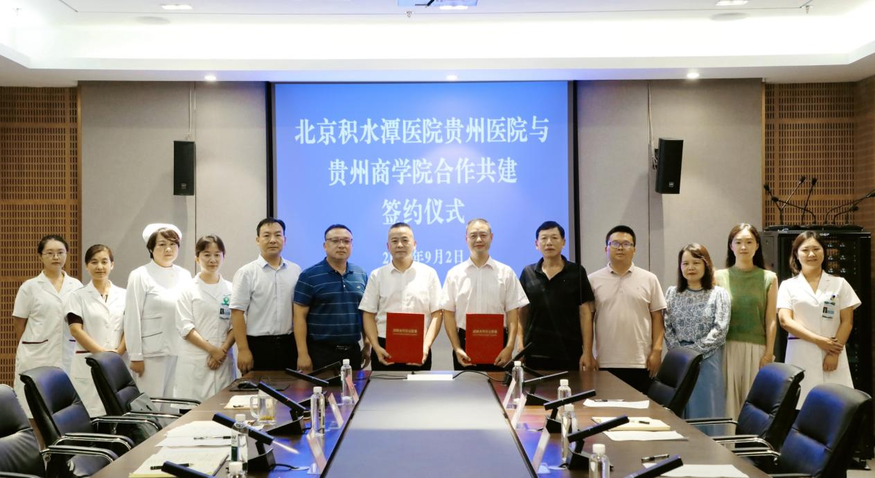 金秋送爽,丹桂盈香。9月2日下午,我校与北京积水潭医院贵州医院合作共建协议签约仪式在北京积水潭医院贵州医院白云院区第一会议室举行。学校党委委员、副校长杨昱率后勤处及医务室一行5人,北京积水潭医院贵州医院党委书记刘勇,党委委员、副院长罗春山等在家院领导及有关职能部门负责人参加。仪式由北京积水潭医院贵州医院党委副书记张卿主持。