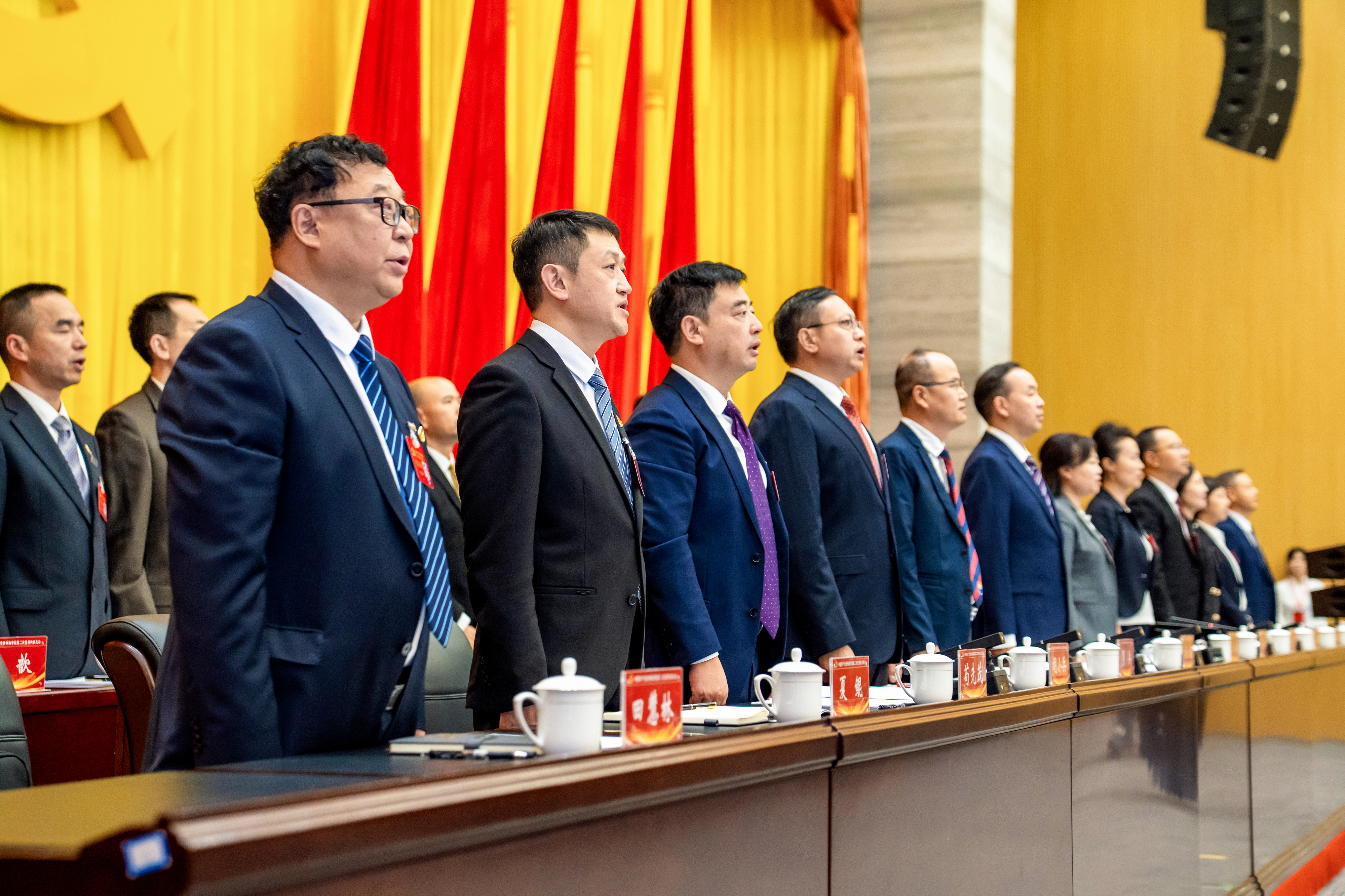大会应到代表106名,实到代表105名,列席代表7名。14时,伴随着雄壮激昂的《义勇军进行曲》乐声,全体党员代表整齐起立,高唱国歌,庄严的氛围感染着现场每一个人,大会正式拉开帷幕。