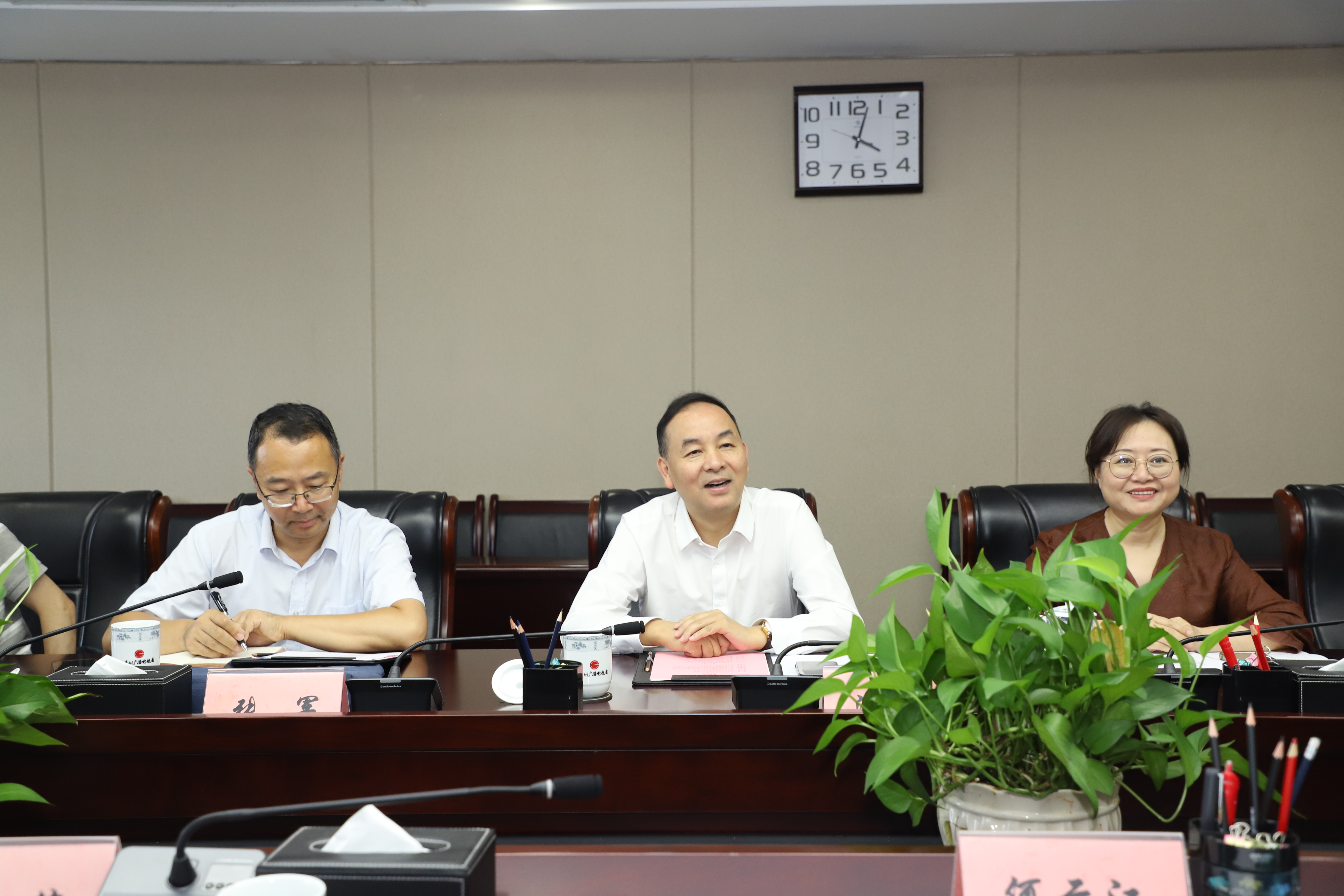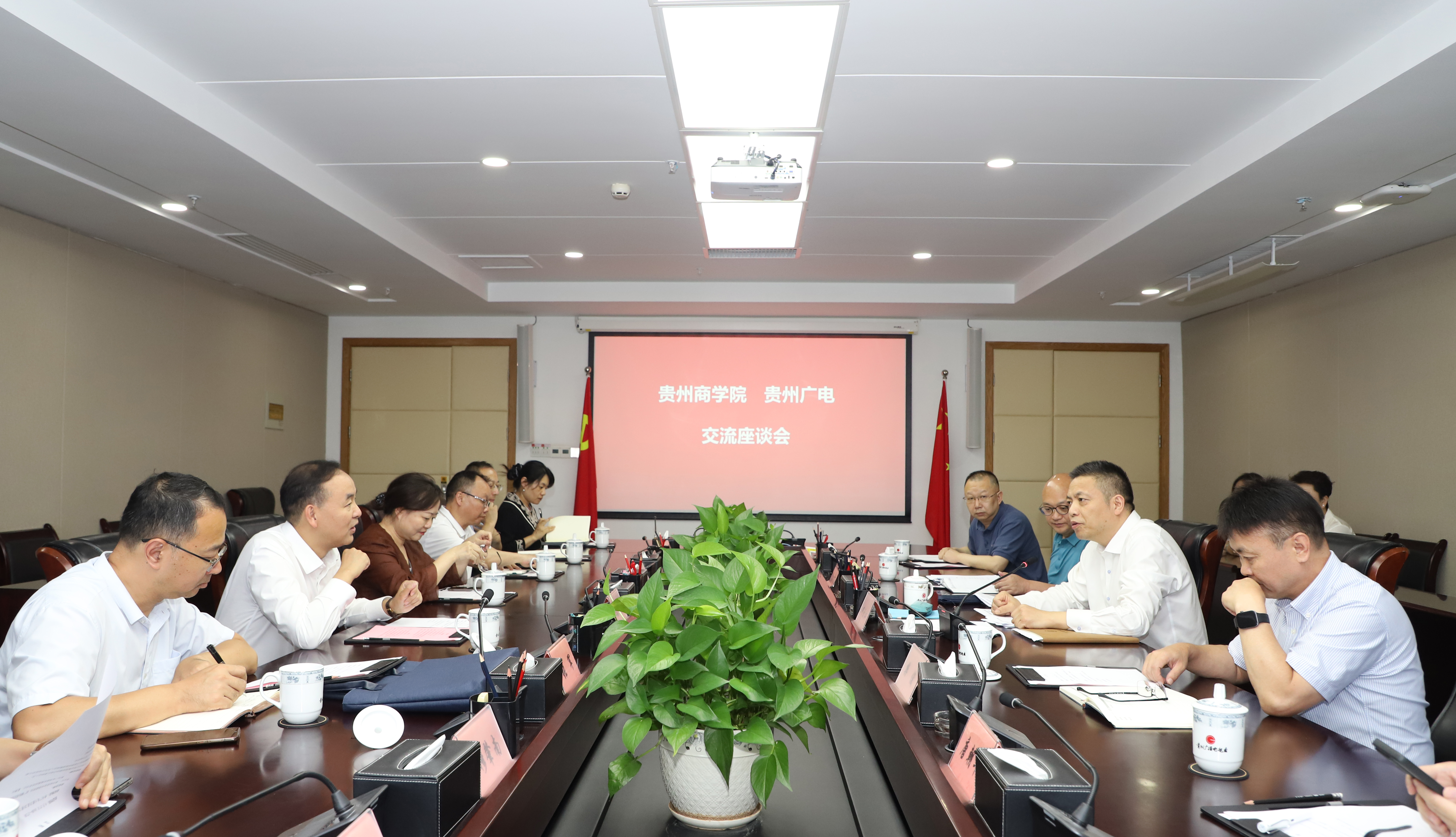 为进一步深化校企合作、推进产学研融合及人才培养,加快推动学校高质量内涵式发展,近日,党委书记汤健、党委副书记、校长肖小虹、党委委员、副校长张军率队赴贵州广电网络传媒集团进行交流座谈。省委宣传部副部长,贵州广播电视台党委书记、台长,贵州广电网络传媒集团党委书记、董事长何云江主持会议。 贵州广电网络传媒集团党委委员、副总经理樊俊,贵州广播电视台战略客户部、全媒体新闻中心、公共频道等相关部门负责人参加座谈并介绍了相关情况。