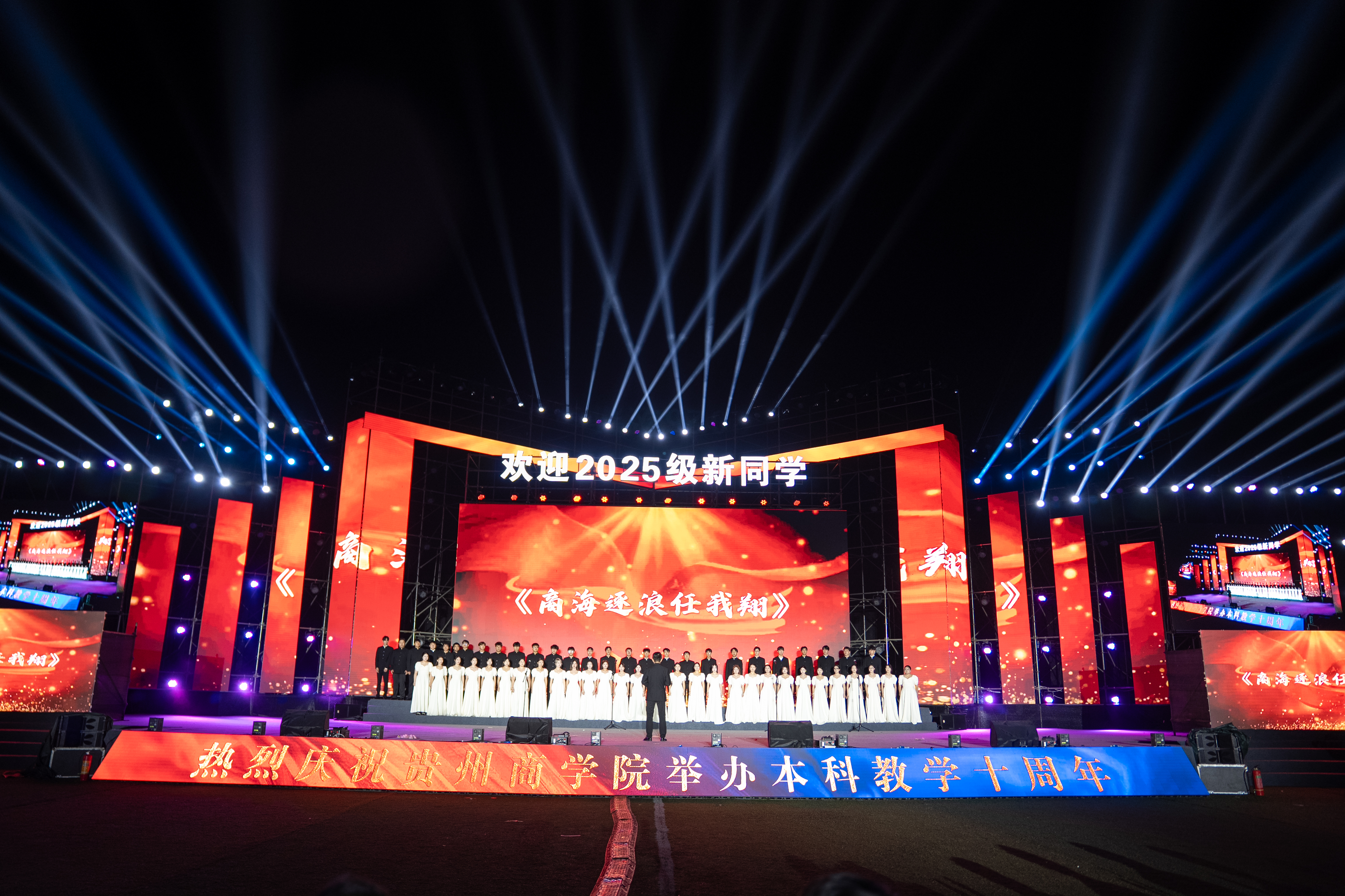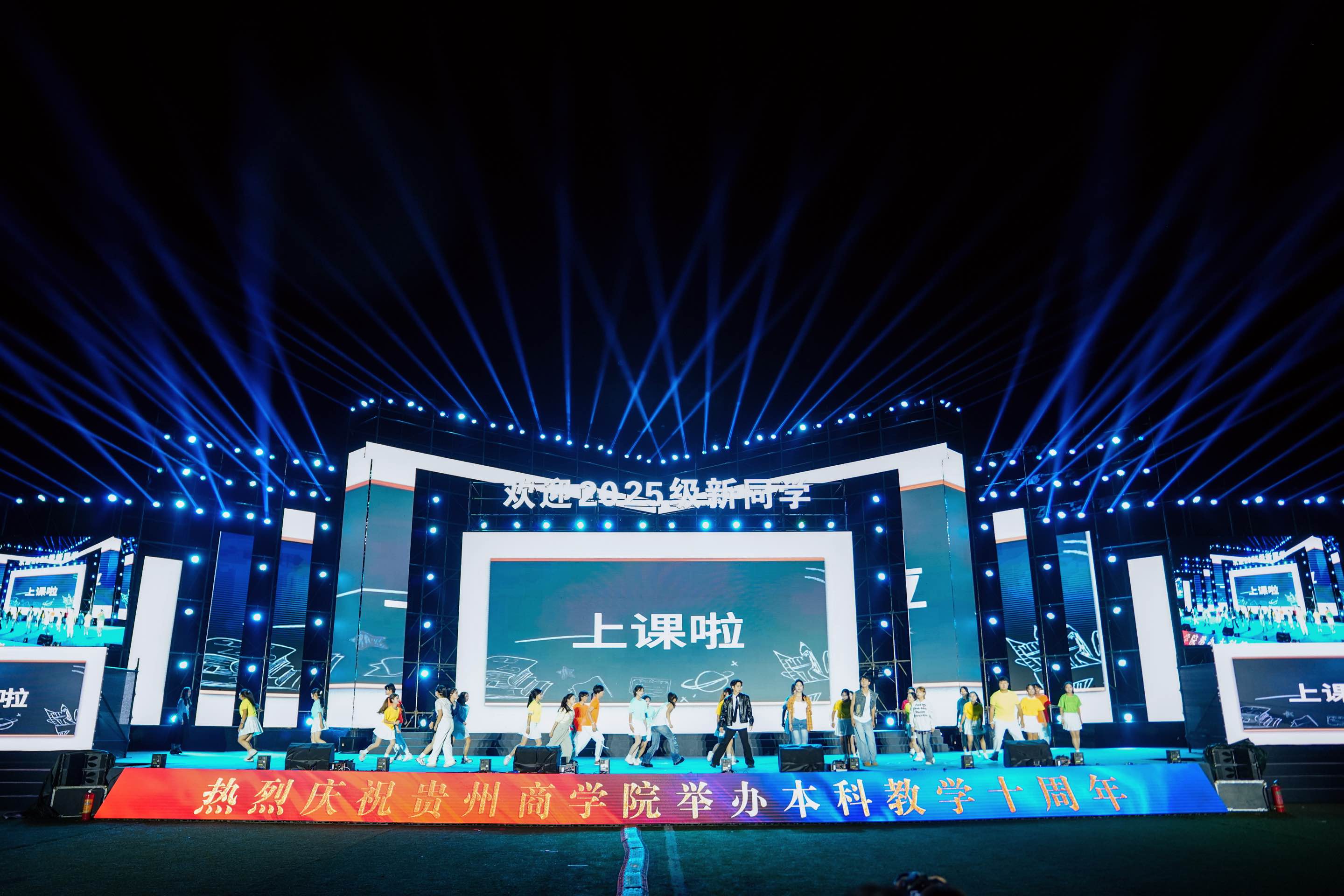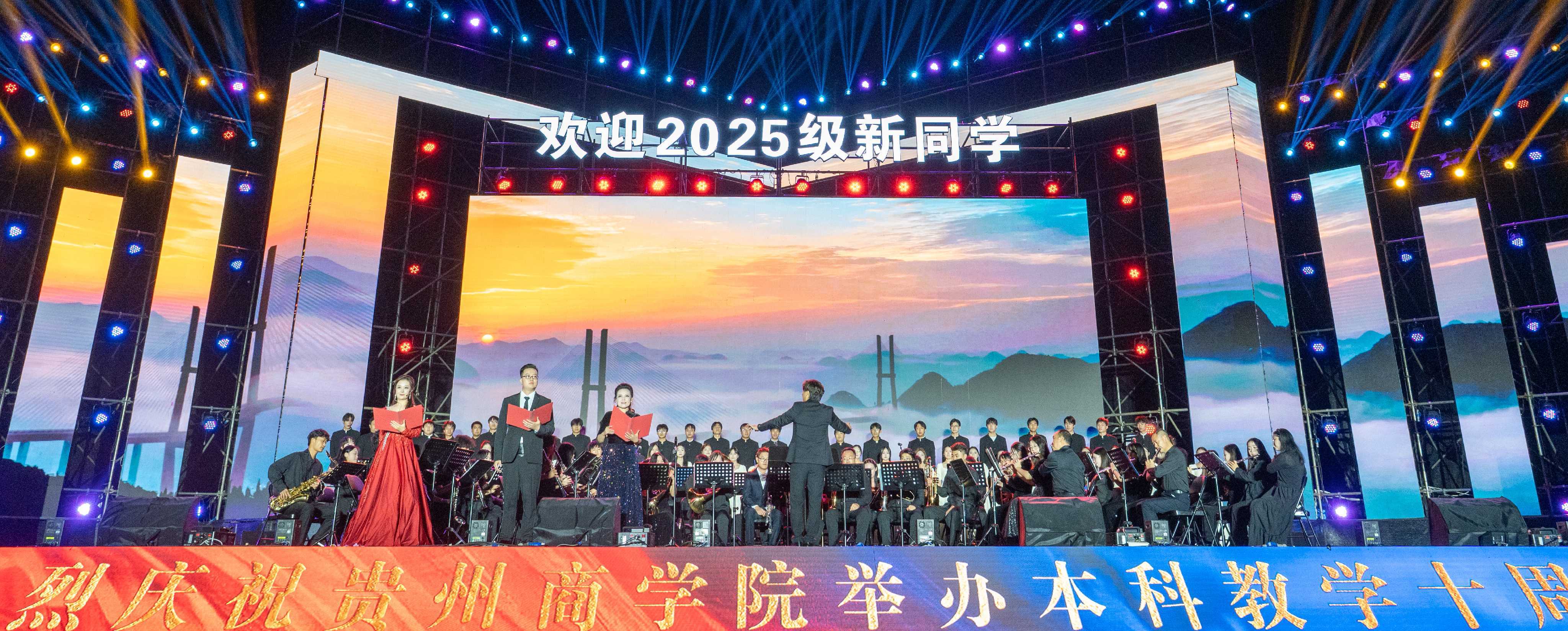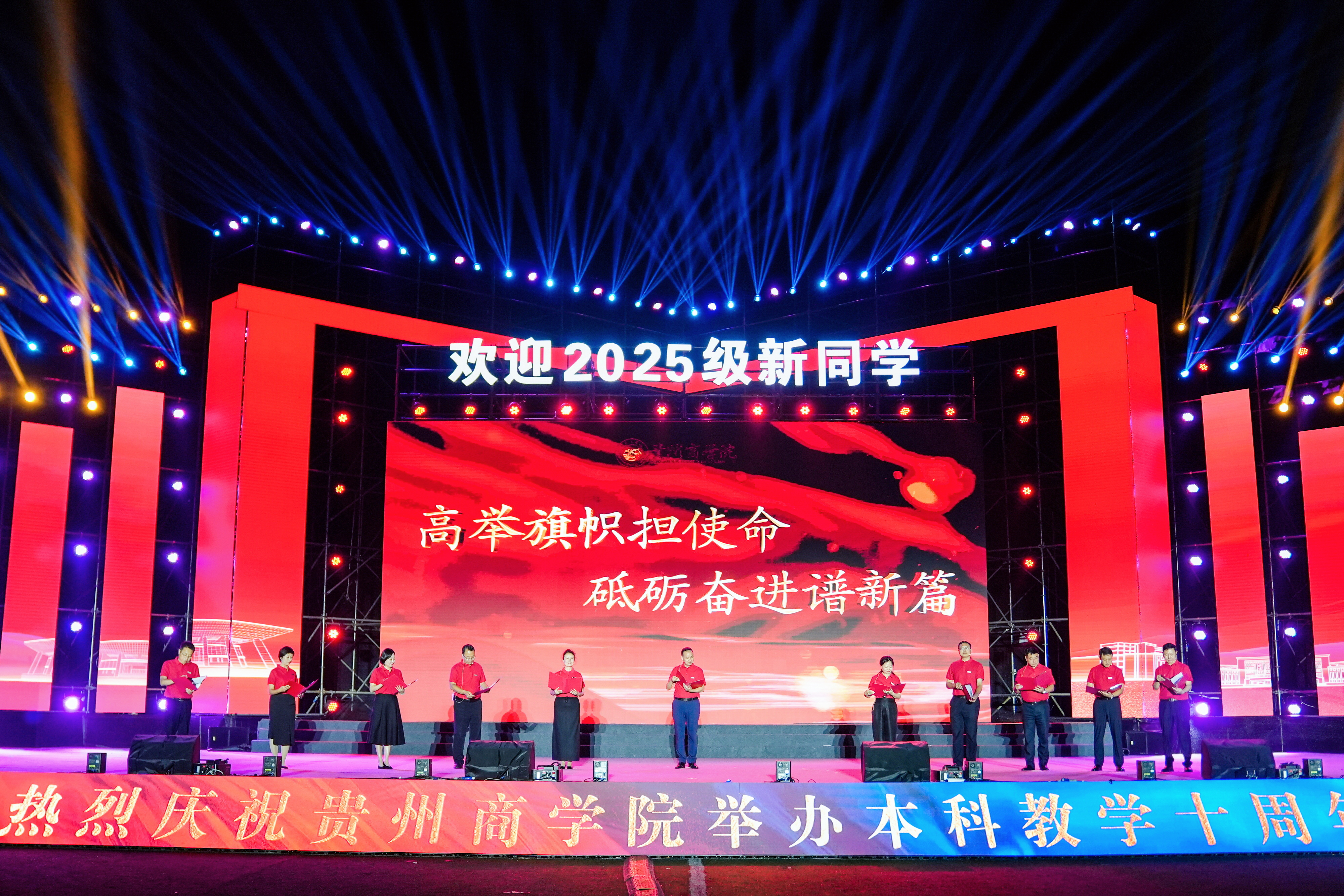 在国庆、中秋“双节”到来之际,9月29日晚,我校在学校体育场隆重举行“商海逐梦破浪前行·初心如磐征程再启”迎接2025级新生文艺晚会。省委教育工委副书记(正厅长级)宋广强出席晚会并讲话,白云区区委副书记、区长唐樾,省委教育工委宣传部部长朱伟,白云区区委常委、区委宣传部部长李泽君,白云区人大常委会副主任杨友荣,麦架镇党委书记梁剑,麦架镇党委副书记、镇长鄢皓出席晚会。贵州商学院原党委书记涂小亭,贵州商学院原校长武鸣,贵州商学院原校长、正厅长级干部、省政协经济委员会副主任罗兵,校领导汤健、肖小虹、蒋云丽、胡小兵、张军、苟先茂、成蕴琳、夏鲲、马红梅,副厅长级干部杨昱,党委常委陈兴科、赵岩出席晚会。