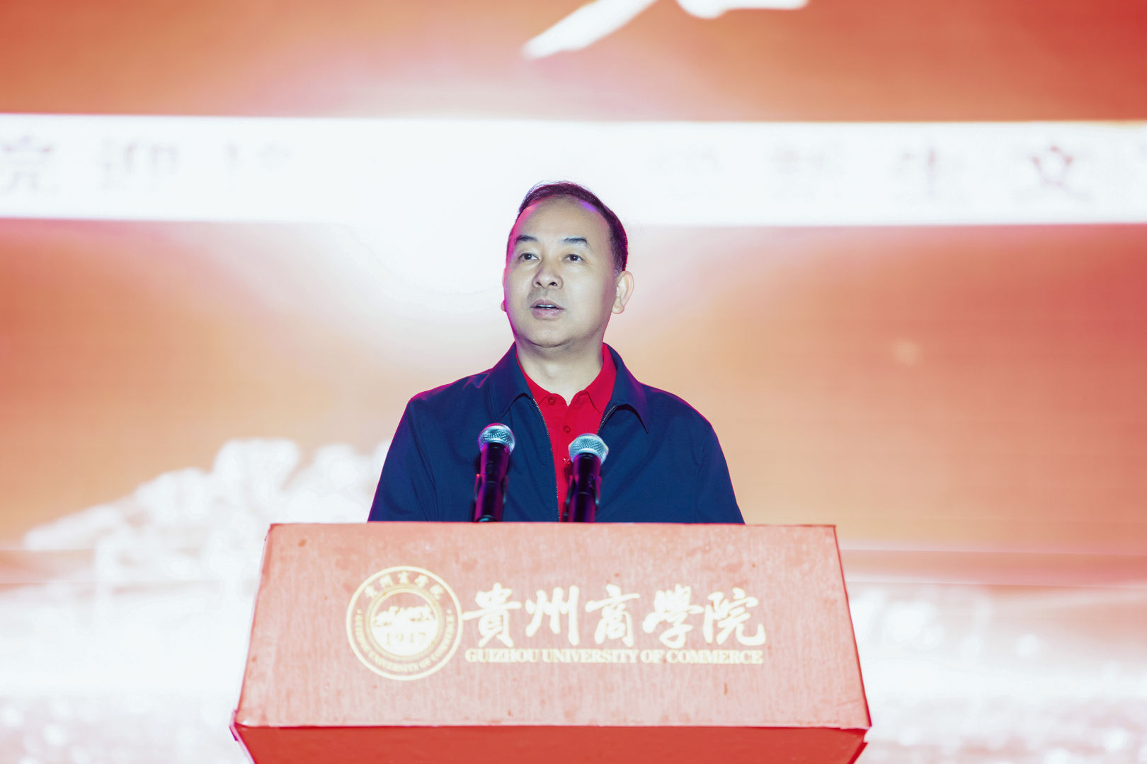 汤健代表学校党委向全体教职工生致以节日的祝贺和最诚挚的慰问!向拨冗莅临的各位领导、各位来宾表示最衷心的感谢。汤健指出,回望76年,祖国从“站起来”“富起来”迈向“强起来”,贵州商学院的发展始终与祖国脉搏同频共振,学校一步步发展成为特色鲜明的高水平新型商科院校,实现了办学实力的跨越式提升,让“黔商摇篮”的根基在岁月里愈发坚实。