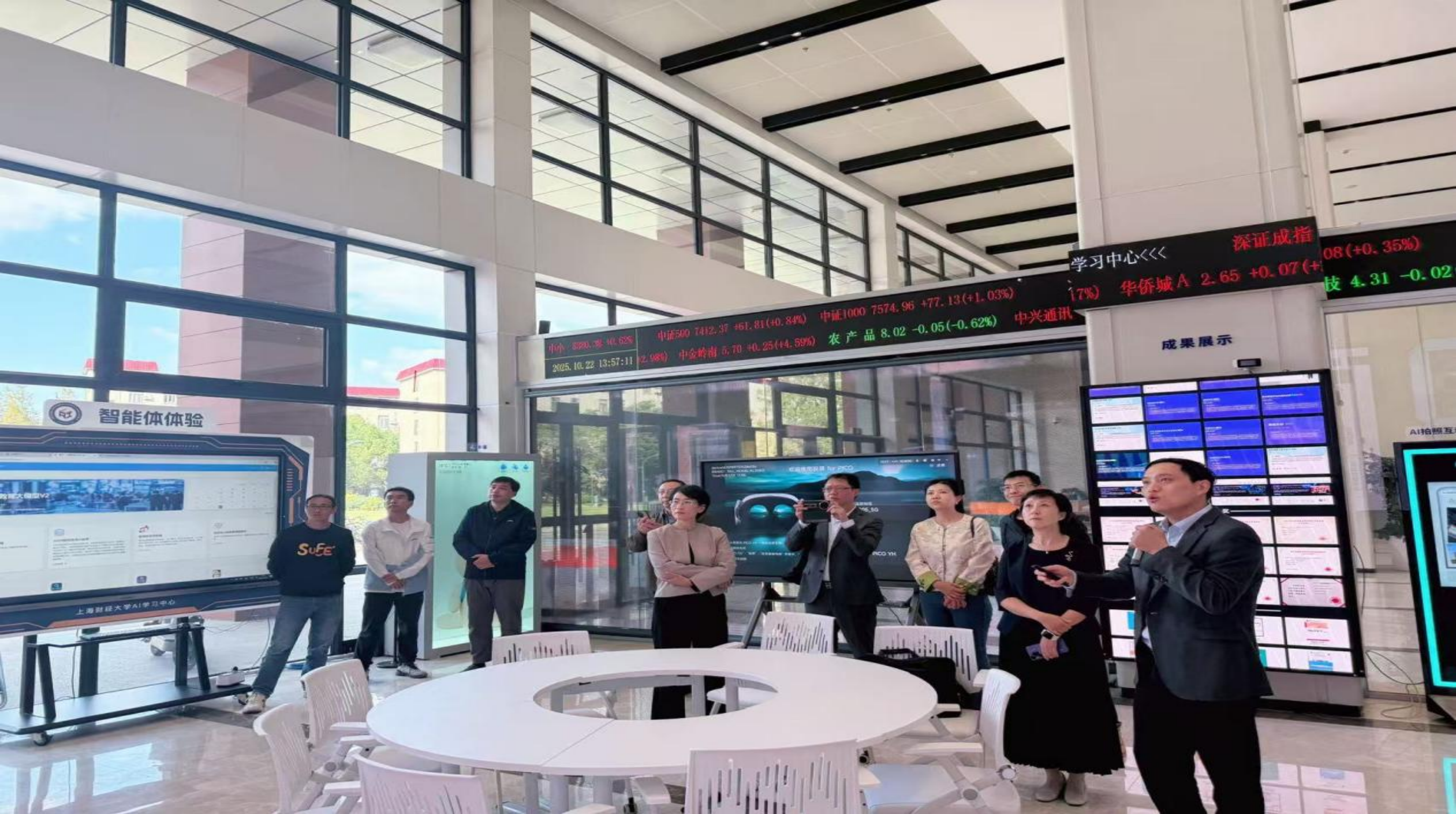 在上海财经大学,党委常委、副校长靳玉英,校长助理、教务处处长夏纪军陪同马红梅一行参观了新建成的AI学习中心,详细了解了匡时财经教育大模型在智能教学平台中的应用成果。在交流会上,AI财经开发与服务中心、数字经济学院、计算机与人工智能学院以及合作发展处的负责人分享了上海财经大学在人工智能赋能教育创新、构建智慧育人新模式方面的经验,重点讨论了通过课程模块化重组、跨学科课程整合、将企业真实项目融入课堂教学等策略,以培养具备数字素养的复合型财经人才。