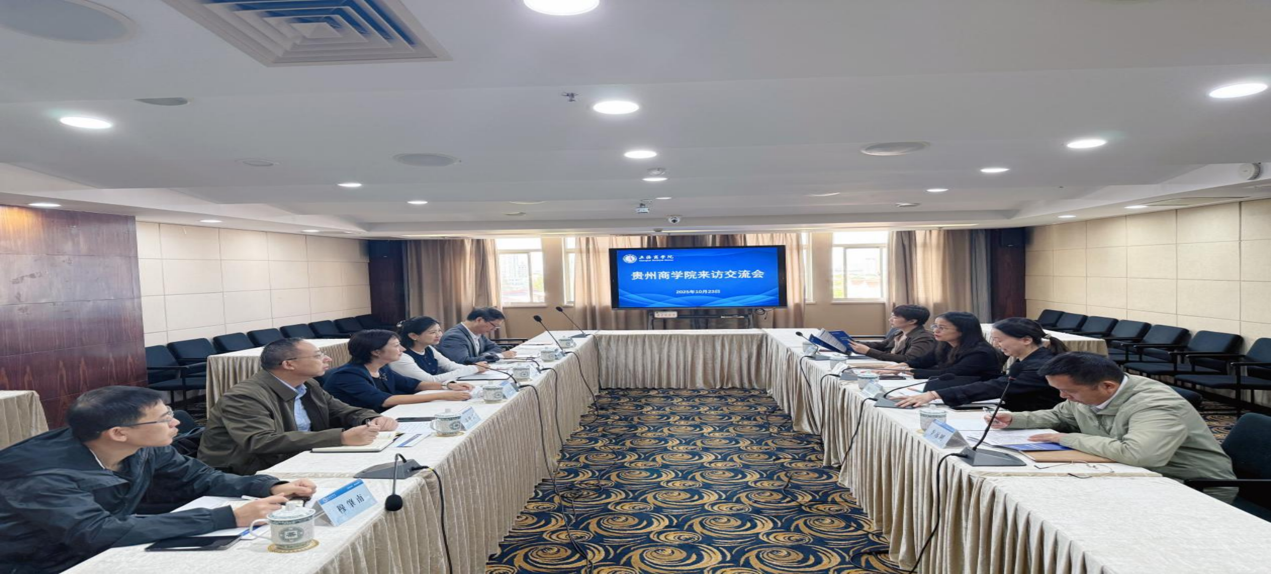 在上海大学,经济学院党委书记尹应凯热情接待交流团一行,经济系、产经中心和金融系负责人介绍了专业建设过程中“课程-产业-科研”如何实现三维联动。同时,在应用型财经人才培养、数字经济研究等领域开展深入探讨。