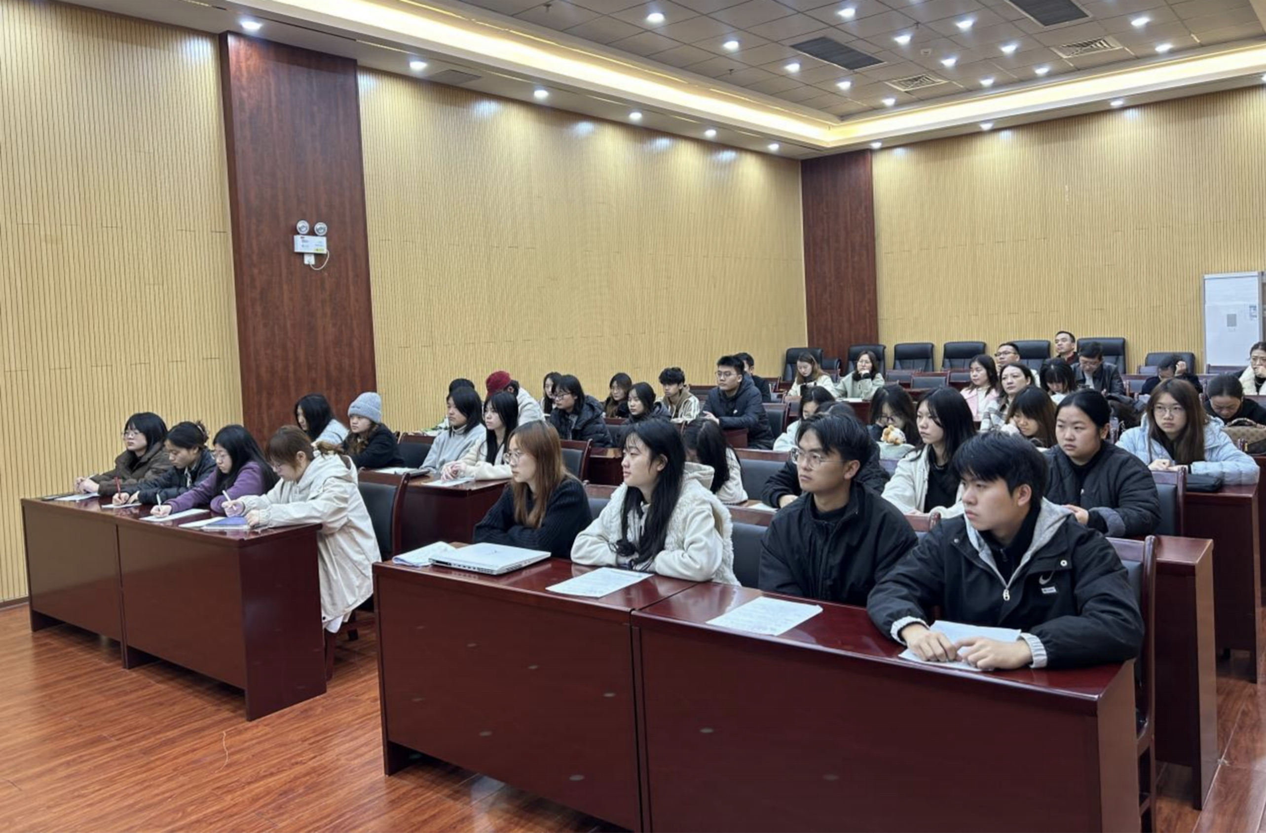 文化旅游学院党政领导、部分学生及国际教育学院教师党支部的党员教师聆听讲座。