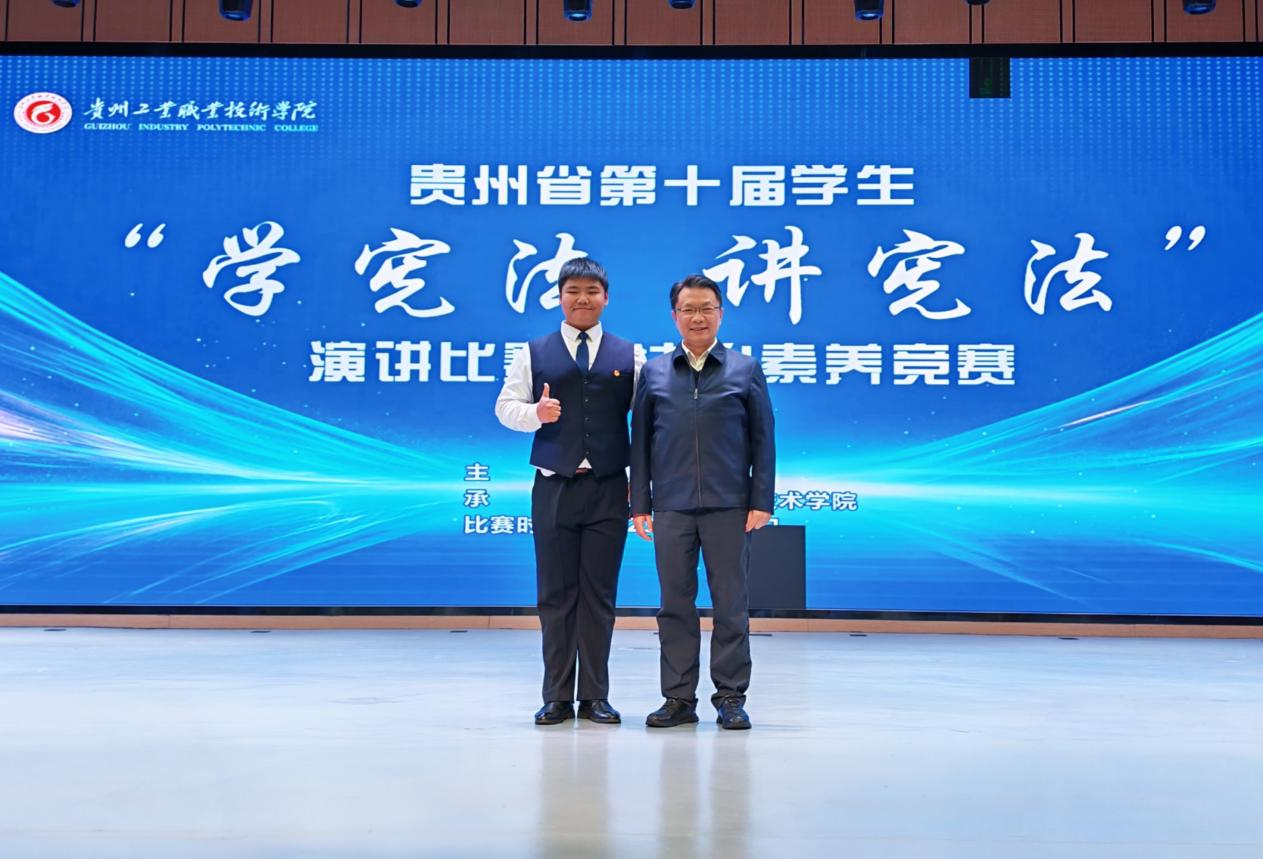 11月1日,贵州省第十届学生“学宪法 讲宪法”演讲比赛落下帷幕,我校数字经济与金融学院国际商务2024-2班学生王胡兴宇凭借扎实的宪法素养与出色的表达能力一路过关斩将,最终荣获高校组二等奖。