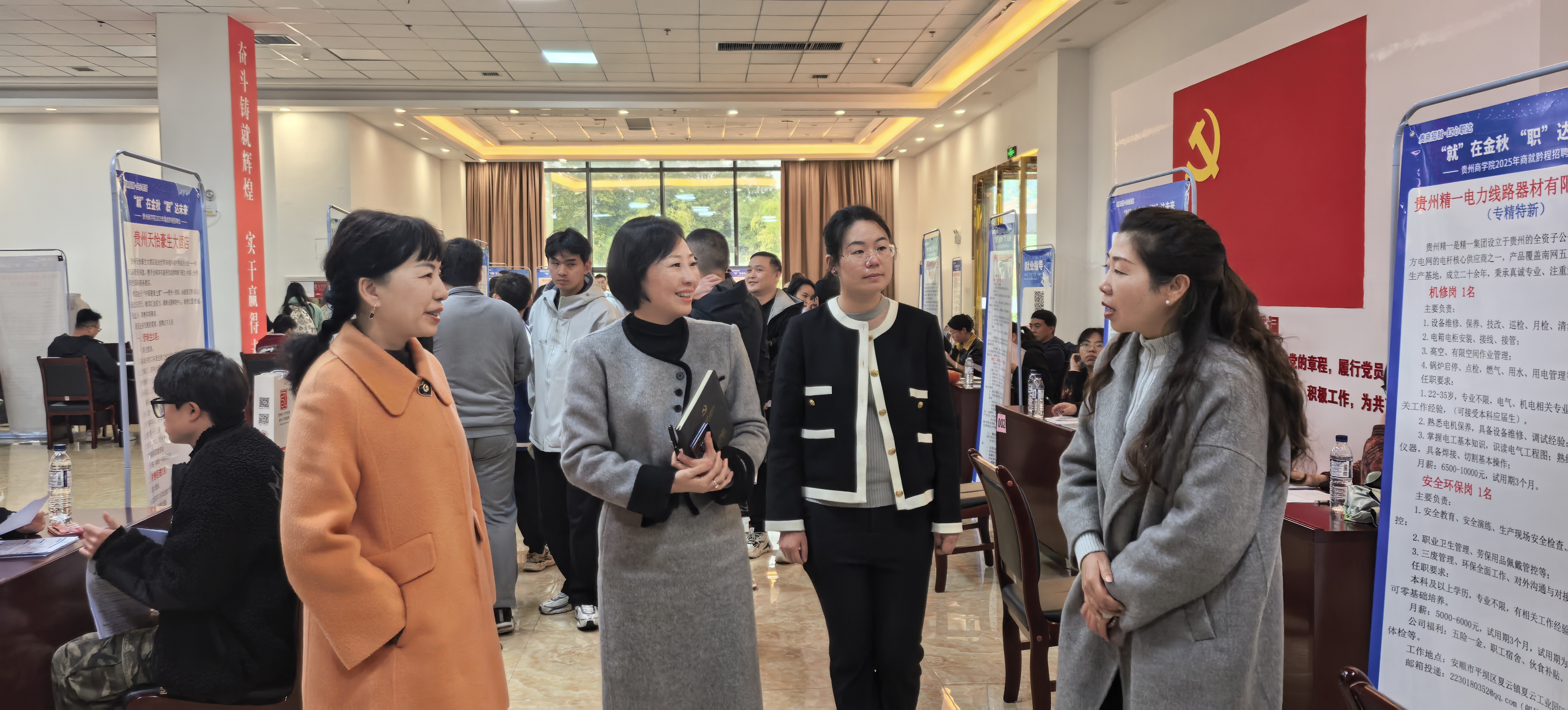 为深入学习贯彻党的二十届四中全会精神,落实党中央、国务院和省委、省政府关于就业工作的决策部署,抢抓“秋招”促就业关键期,促进高质量充分就业,10月31日下午,由招生就业处主办、贵州省人才大市场承办、工商管理学院协办的“‘就’在金秋‘职’达未来——贵州商学院2025年商就黔程招聘会”在我校静心湖会议中心成功举办。
