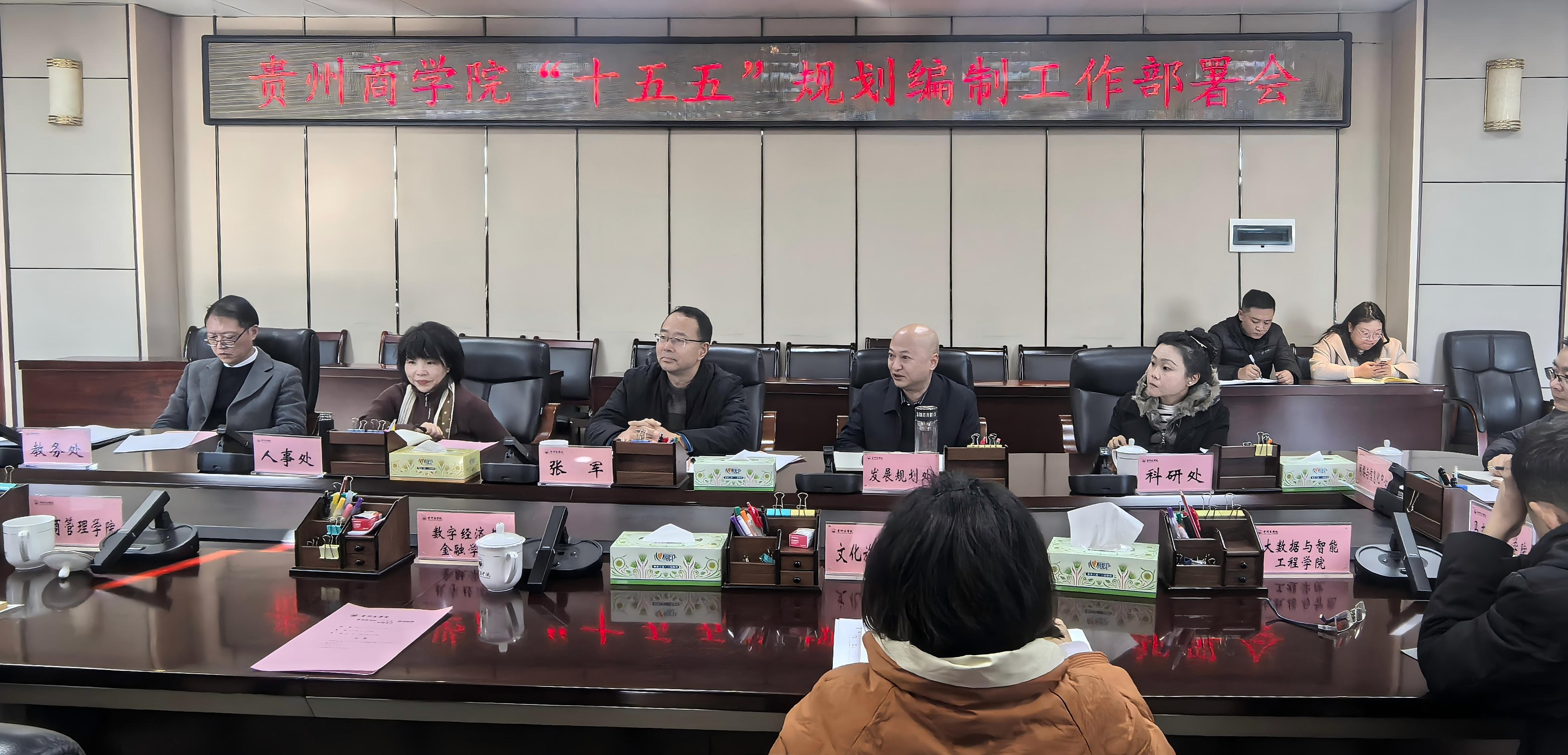 为科学谋划学校未来五年发展蓝图,系统推进“十五五”规划编制工作,11月24日下午,我校召开了贵州商学院“十五五”规划编制工作部署会。党委常委、副校长张军主持会议,专项规划牵头部门主要负责人及相关二级学院院长参加会议。会议对《贵州商学院“十五五”事业发展规划》及相关专项规划、子规划的编制工作进行了部署,明确了时间节点与任务要求。