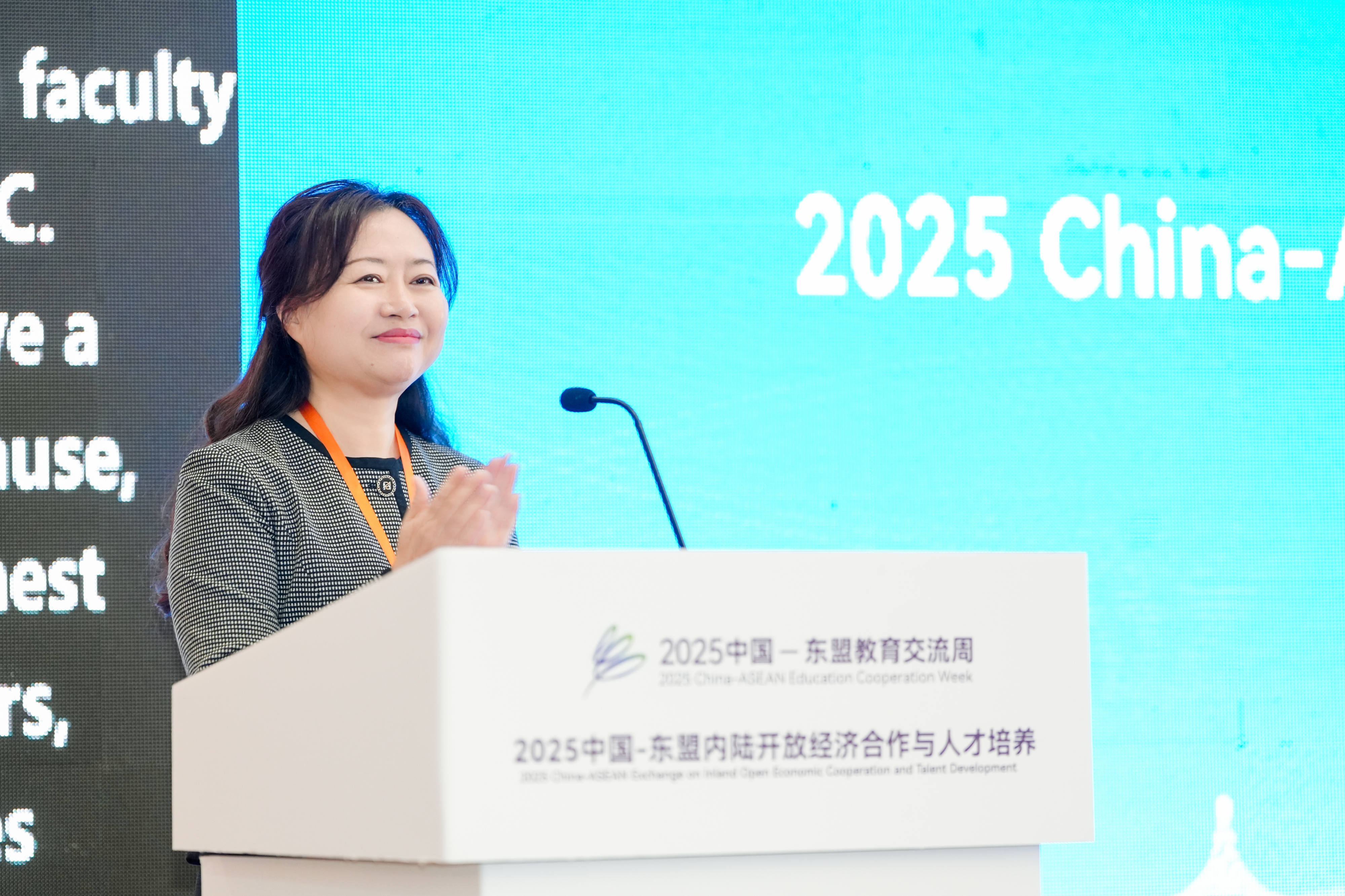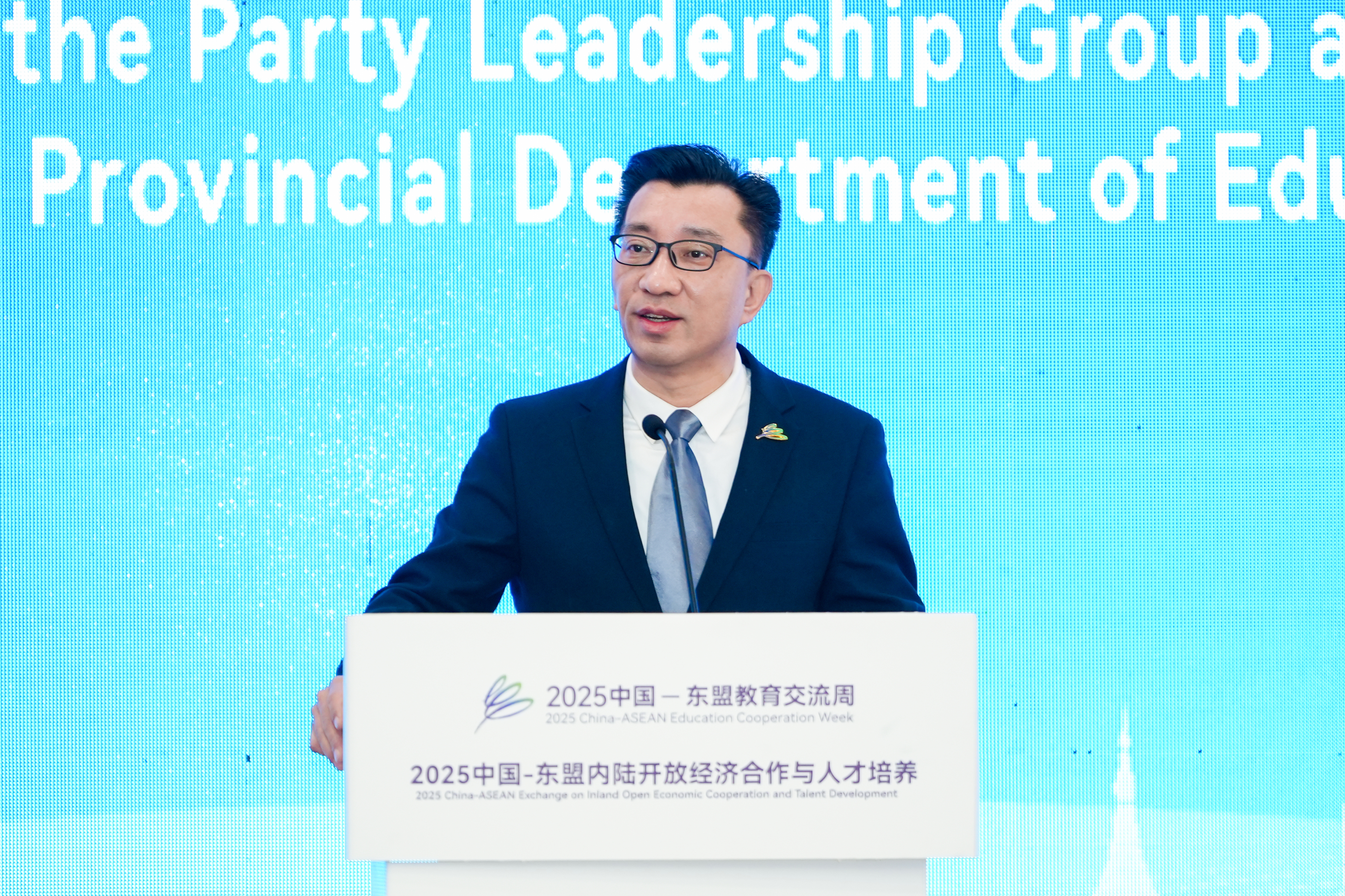 贵州省教育厅党组成员、副厅长白震在致辞中热烈祝贺项目举行。他指出,交流周始终立足贵州、服务全国、面向东盟,积极服务国家外交大局,深度赋能区域教育合作与地方高质量发展,不仅为贵州打开了联通世界的窗口,也使黔中大地成为中国与东盟教育人文交流的重要舞台。他希望贵州商学院以此次项目为契机,持续深化开放办学,进一步拓展与东盟高校的合作广度与深度,在人才共育、科研创新等方面实现更多突破,为贵州教育对外开放树立更高标杆、作出更大贡献。他希望各位嘉宾、各界朋友一如既往地关心和支持贵州与东盟的教育交流合作,多为双方协同发展牵线搭桥、建言献策,推动形成更多务实成果,让民心相通之桥愈宽,合作共赢之路愈远,共同书写中国—东盟教育合作的崭新篇章。