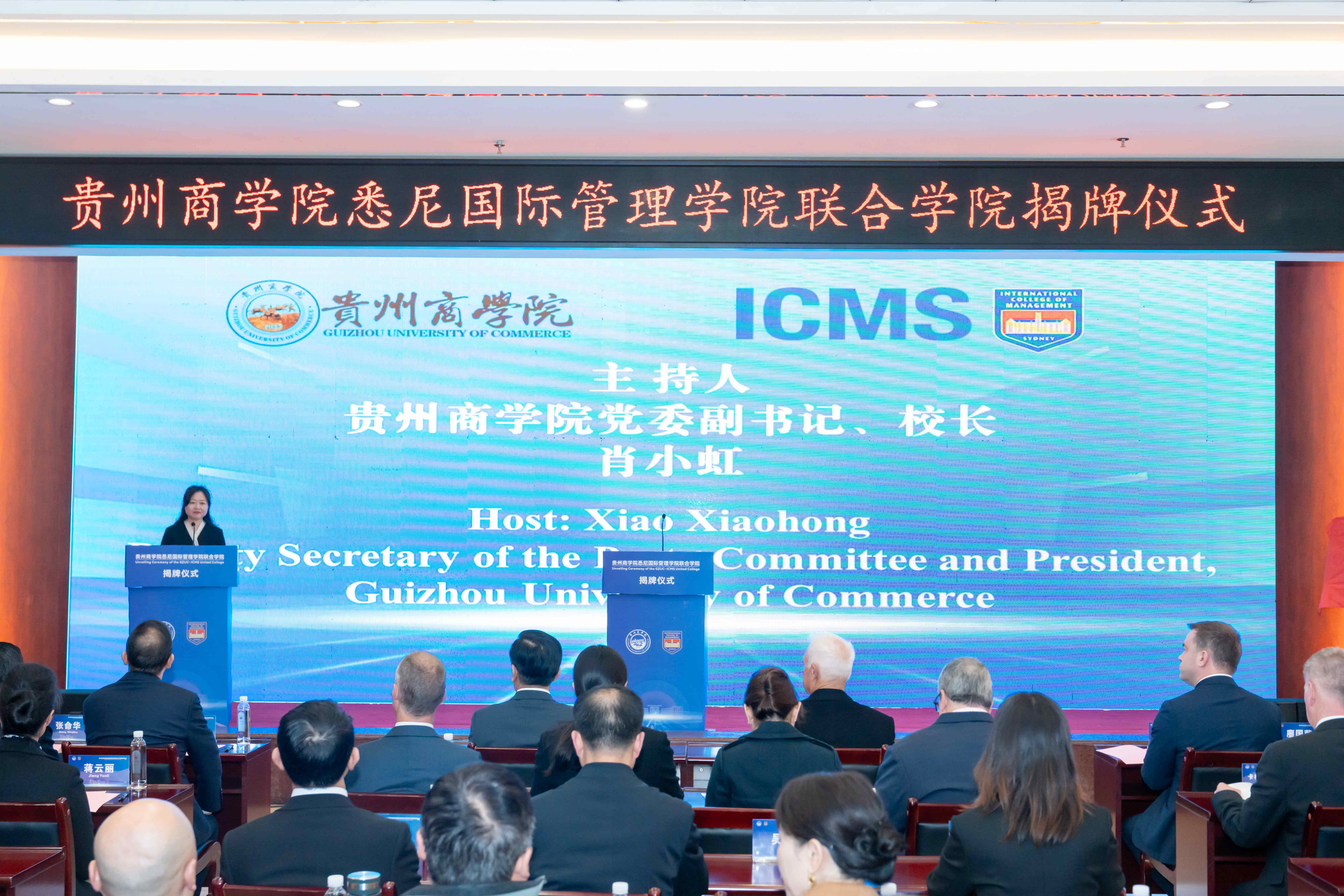 贵州商学院党委副书记、校长肖小虹主持贵州商学院悉尼国际管理学院联合学院揭牌仪式