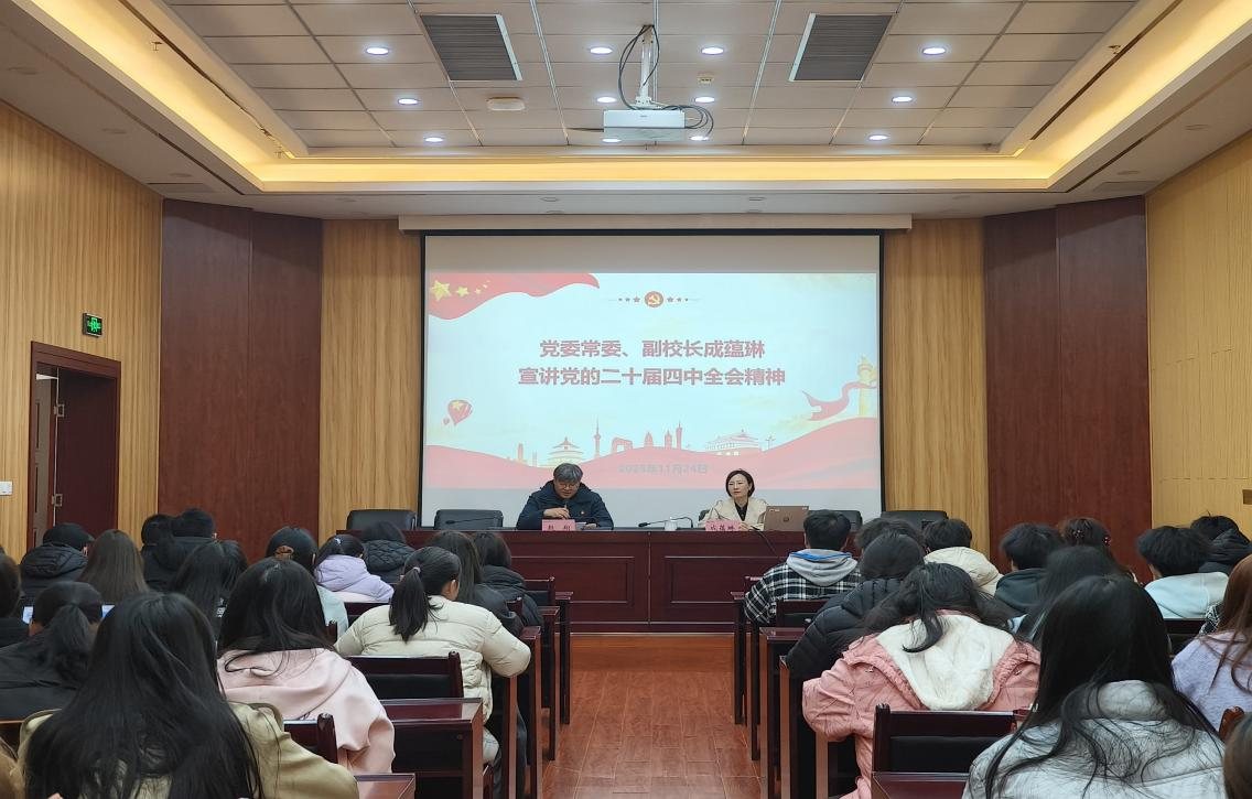 为全面贯彻落实党的二十届四中全会精神,切实把思想和行动统一到党中央决策部署上来,11月24日下午,党委常委、副校长成蕴琳为师生宣讲党的二十届四中全会精神并讲授思政课。