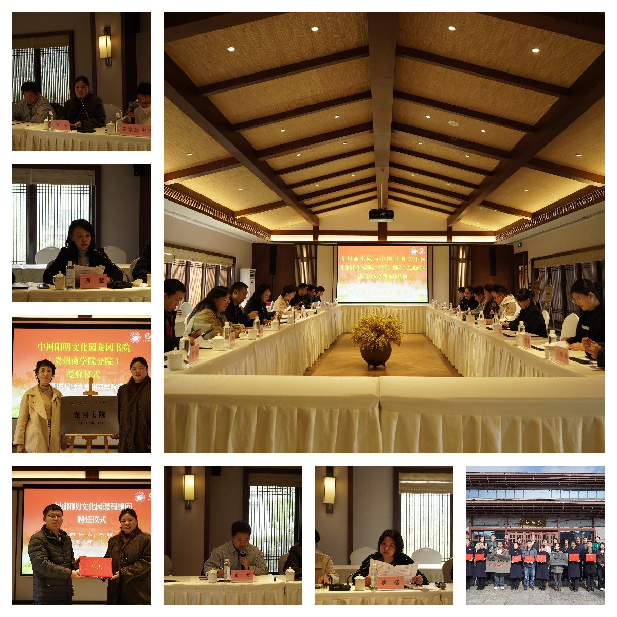 12月18日,贵州商学院与中国阳明文化园-龙冈书院举行联合共建活动,活动旨在深入贯彻落实习近平总书记关于推动马克思主义基本原理同中华优秀传统文化相结合的重要指示精神,积极推动落实省委关于在全省高校推进“马院+书院”协同育人工作部署和省委教育工委工作安排。党委副书记胡小兵,党委常委、副校长马红梅,修文阳明文化管理有限公司副总经理陈瑜参加活动并出席座谈会,学生工作部、马克思主义学院、文化旅游学院、通识教育学院、实践教学中心负责人,党委宣传部、党委统战部、学校“马院+书院”工作专班人员及有关受聘教师参加上述活动。