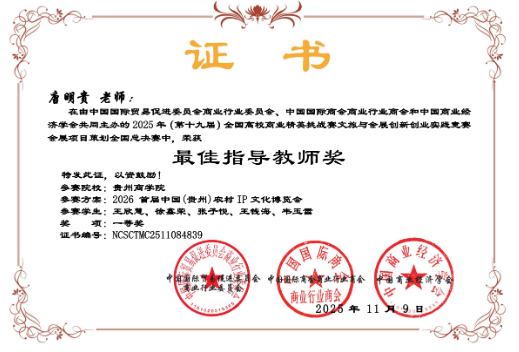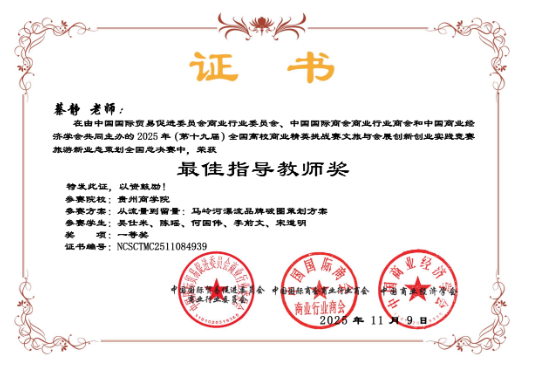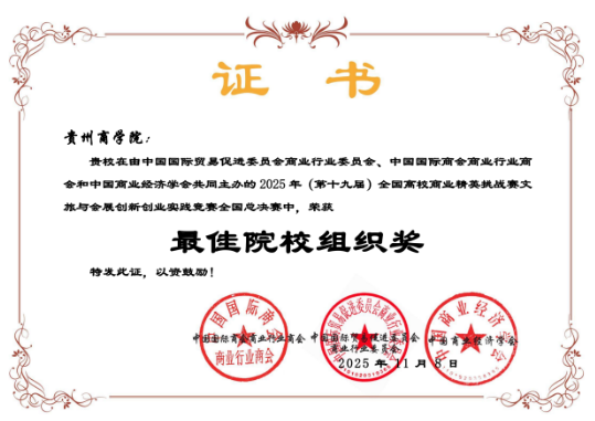 学校高度重视备赛工作,依托会展经济与管理专业核心优势,组建由资深专业教师构成的专项指导团队,为晋级队伍提供“一对一”精准辅导。最终,贵州商学院参赛队伍在全国600余所高校、万余支队伍的激烈角逐中再创辉煌,斩获全国一等奖4项、二等奖14项、三等奖24项,在获奖总数和各等级奖项数量中均位居全省参赛高校第一。同时,我校凭借出色的赛事组织与备赛统筹工作,荣获组委会颁发的“最佳院校组织奖”。