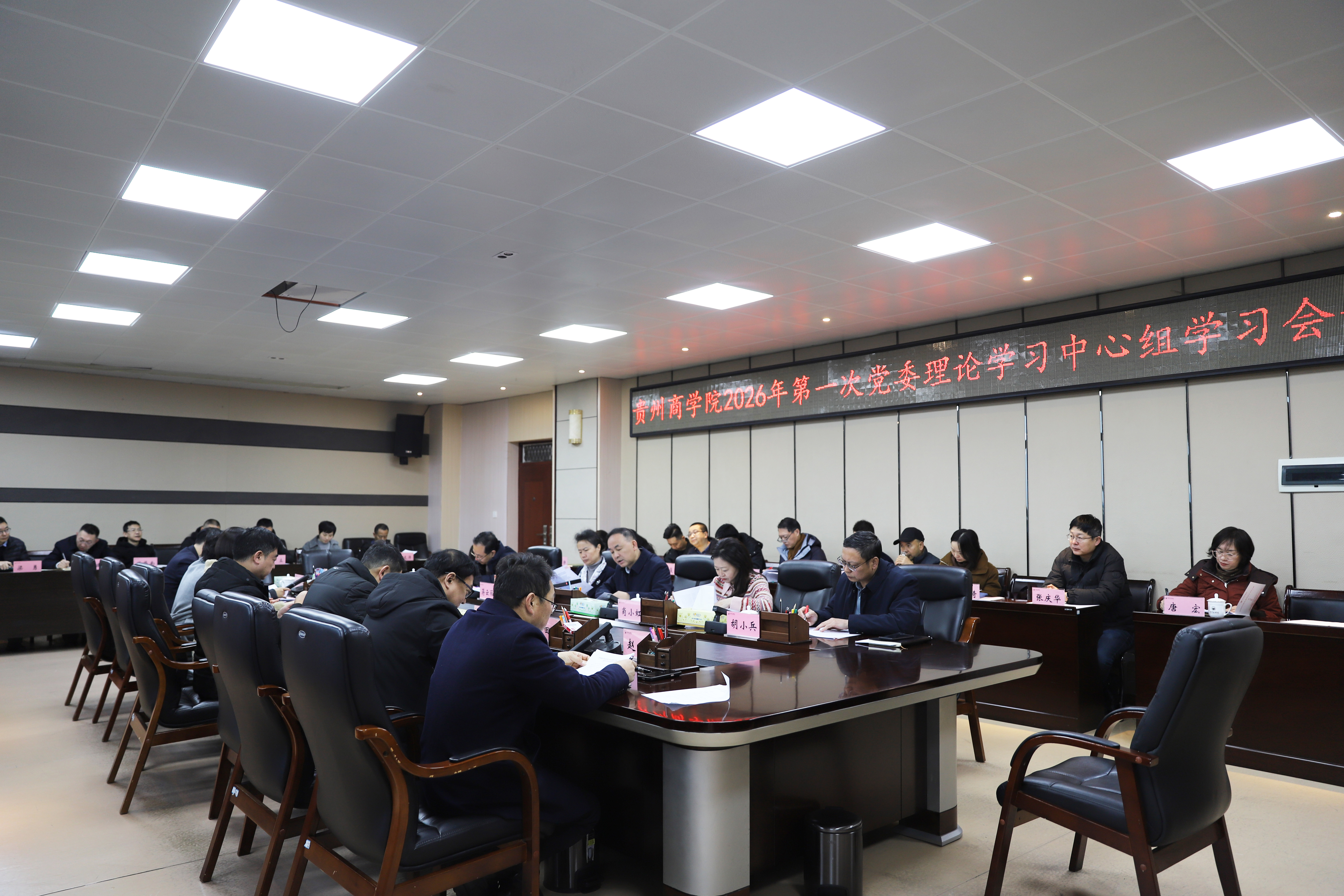 1月20日上午,学校党委在思齐楼514会议室召开2026年度第一次党委理论学习中心组学习会议,会议深入学习贯彻二十届中央纪委五次全会精神,持之以恒推进全面从严治党,坚决把党的自我革命要求落实到位,推进党的作风建设常态化长效化,为高质量开好党委领导班子民主生活会打牢思想基础。党委书记汤健主持会议并讲话,党委副书记、校长肖小虹,党委副书记蒋云丽、胡小兵,党委常委、副校长张军、苟先茂、成蕴琳,党委常委、纪委书记、监察专员夏鲲,党委常委、副校长马红梅,副厅长级干部田慧林,党委常委、党委组织部部长陈兴科,党委常委、党委宣传(统战)部部长、党委(校长)办公室主任赵岩出席会议。