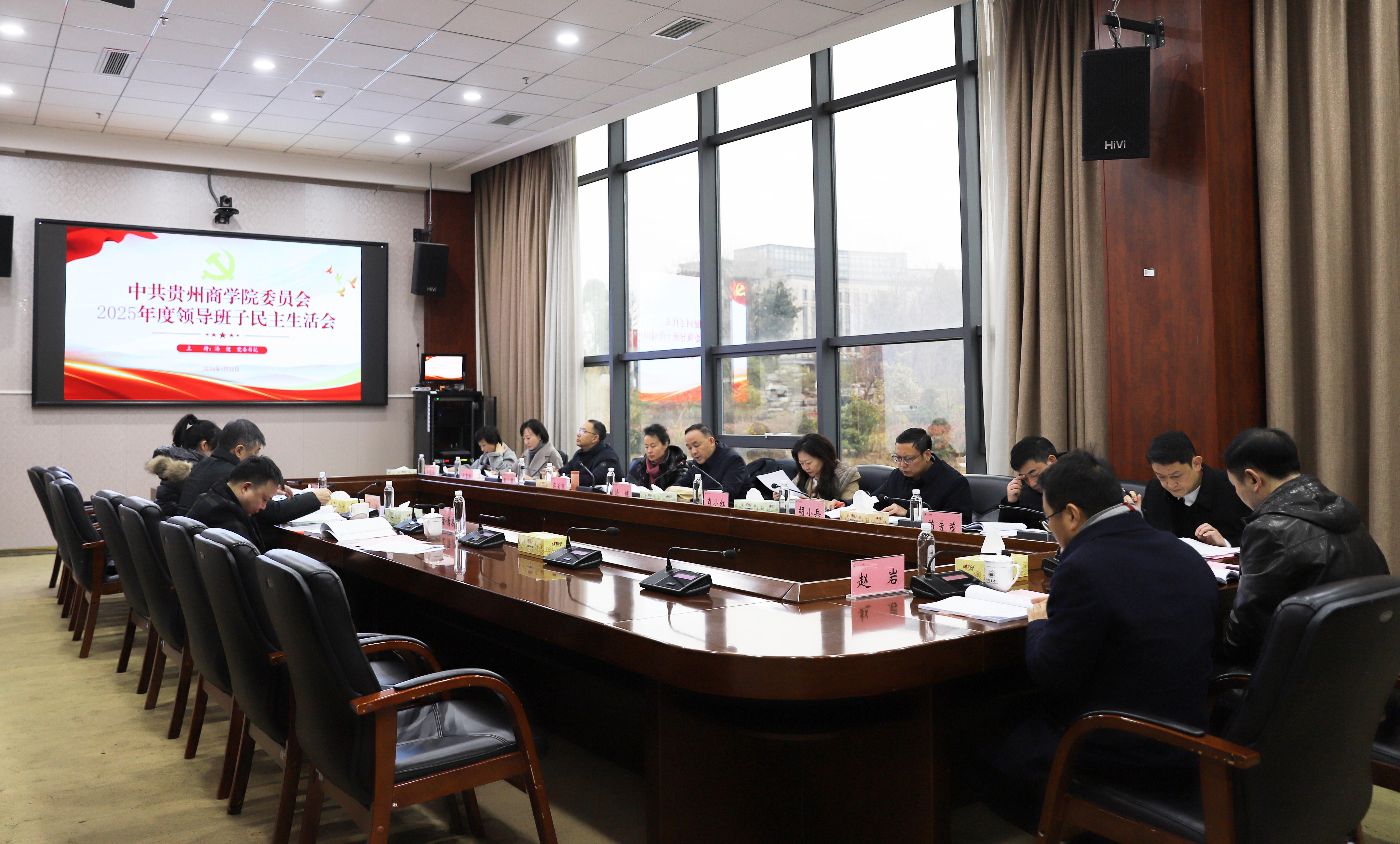 根据党中央部署和省委工作要求,1月22日,贵州商学院党委召开2025年度民主生活会,省委第三十二督导组到会指导。党委书记汤健主持会议,校领导肖小虹、蒋云丽、胡小兵、张军、苟先茂、成蕴琳、夏鲲、马红梅,党委常委陈兴科、赵岩参加会议。