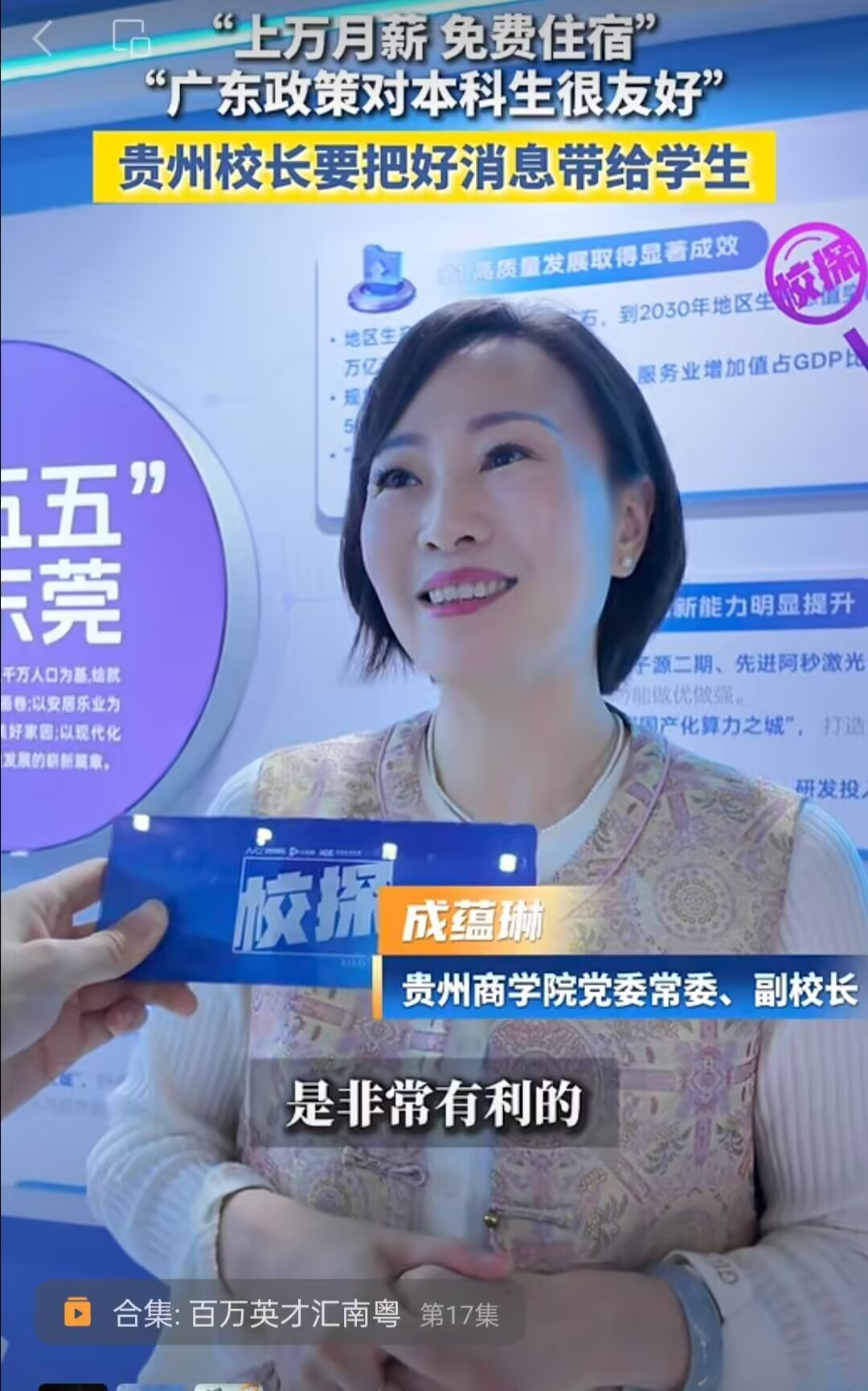 在招聘会现场,成蕴琳一行与参会的用人单位招聘人员进行交流,详细了解企业的岗位设置、人才需求和毕业生求职等情况,派发2026届毕业生就业推荐材料,向用人单位推荐我校毕业生。在城市展区,成蕴琳还详细了解了广东省各个城市的产业发展状况、人才政策等情况,并接受南方都市报的采访,鼓励我校学子积极融入粤港澳大湾区建设,提高就业质量。