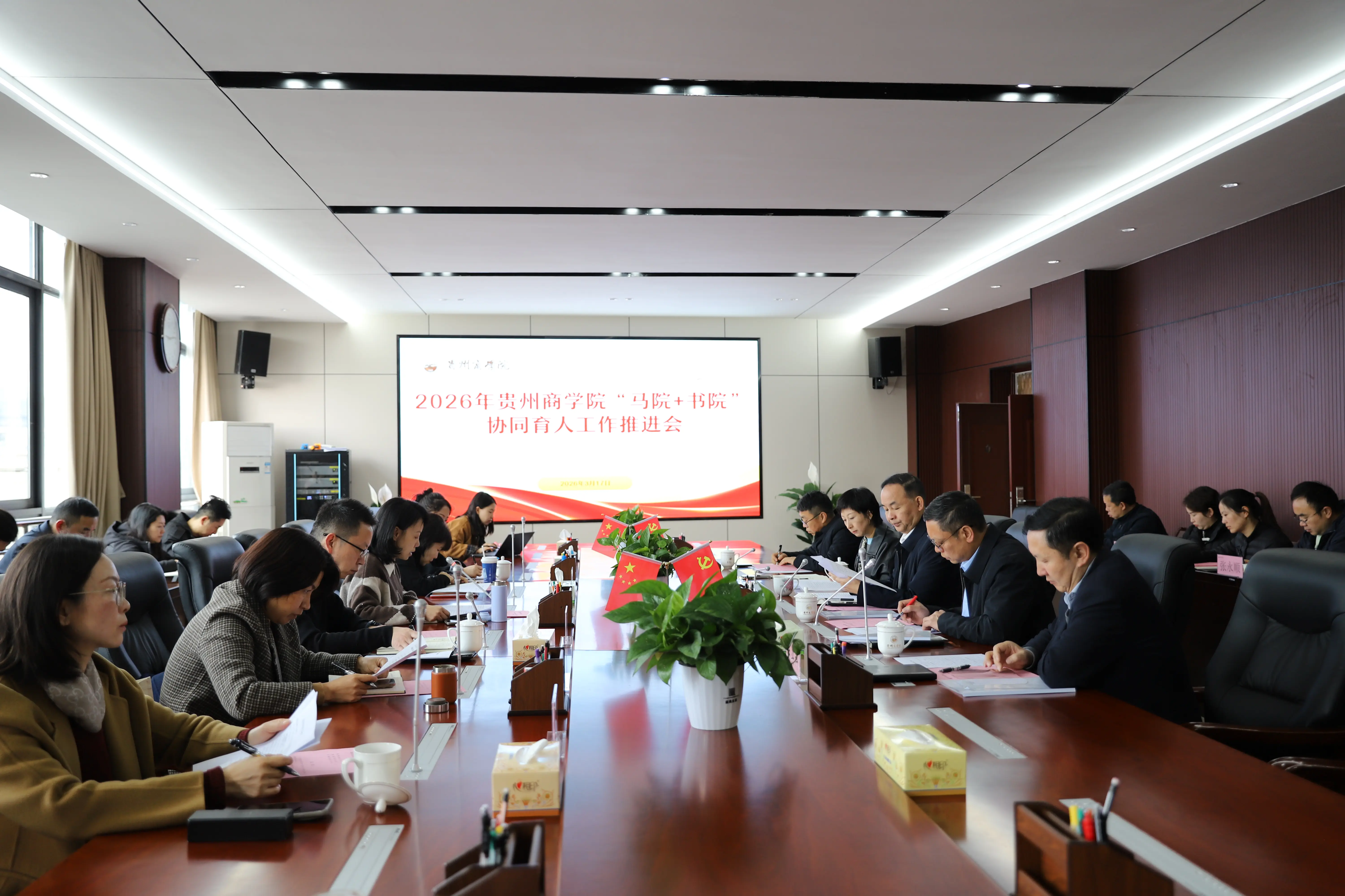为进一步深化和推动马克思主义学院与中华文化书院的协同育人工作,构建全员、全过程、全方位、全领域育人格局,3月17日,学校召开贵州商学院“马院+书院”协同育人工作推进会。党委书记汤健,党委常委、副校长马红梅,党委常委、党委组织部部长陈兴科,党委常委、党委宣传(统战)部部长、党委(校长)办公室主任赵岩出席会议。党委副书记胡小兵主持会议。