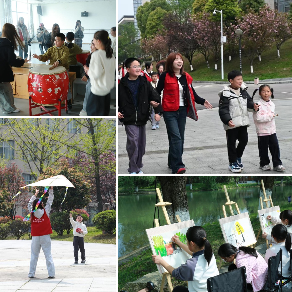 本次活动精心设计了融合自然探索、红色教育、艺术体验与团队协作的多元课程。孩子们在春意盎然的校园里放风筝、丢沙包、寻找春天、捞蝌蚪等,感受季节变换的乐趣;在室内外绘画、下棋、唱歌、跳舞,尽情展示才艺与活力;特别设置的“红色步道”环节,让孩子们在行走中了解革命先辈的奋斗故事;参观校史馆则帮助他们近距离感受父母工作单位的文化积淀与大学精神。