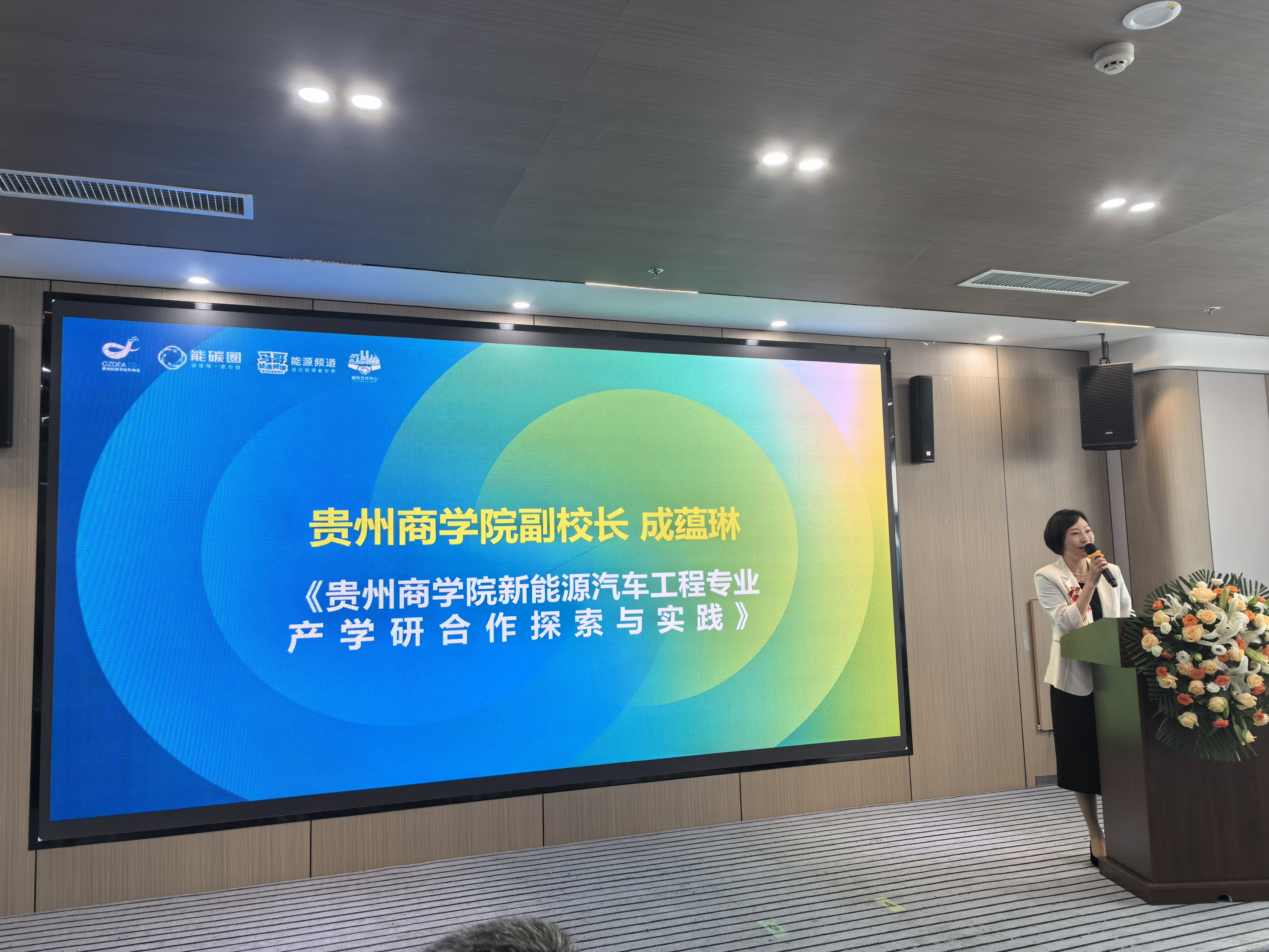 仪式现场,成蕴琳作《贵州商学院新能源汽车工程专业产学研合作探索与实践》主题报告,介绍了学校的基本情况,从学校服务产业发展的角度指出,新能源汽车工程专业是我校紧扣“新型商科大学”定位、服务贵州数字能源产业升级的核心布局。报告重点分享了学校“校协企”三方联动的实践经验,通过共建产业学院,将企业真实项目引入课堂、将产业标准融入教学,实现人才培养与岗位需求无缝对接,着力打造“教育链-人才链-产业链”深度融合的新范式,为地方产业高质量发展输送优质人才。