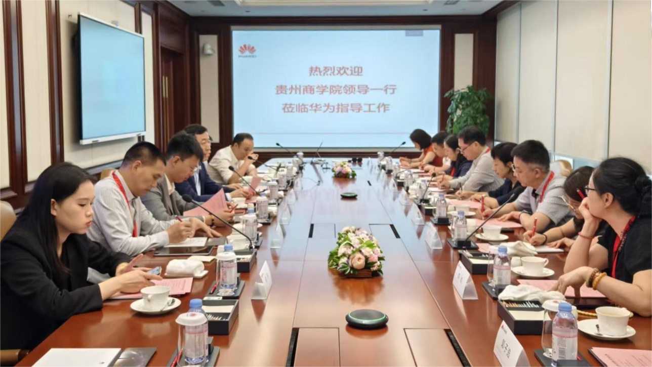4月14日,调研组前往华为技术有限公司深圳总部,参观了华为香农展厅并开展合作座谈。华为培训与认证部全球院校业务总监党张波及相关负责人热情接待。在香农展厅,调研组全面了解了华为在研发投入、核心技术攻关、人工智能全栈体系、行业解决方案、智能协作终端、网络通信技术及校企人才培养生态等方面的前沿成果。座谈会上,华为方面表示将全力赋能高校产业学院建设,融入前沿技术、标准课程与产业认证,助力贵州商学院打造省级示范性现代产业学院。马红梅介绍了学校办学历史、人才培养定位及转型发展需求,希望华为在技术支撑、课程共建、师资培训、认证体系等方面给予支持,双方加快推进产业学院落地实施,合力建设高水平产业学院。双方围绕人才培养方案修订、实验室建设、师资培训、商工融合等内容深入交换意见,并达成共建商科特色华为产业学院的初步共识。