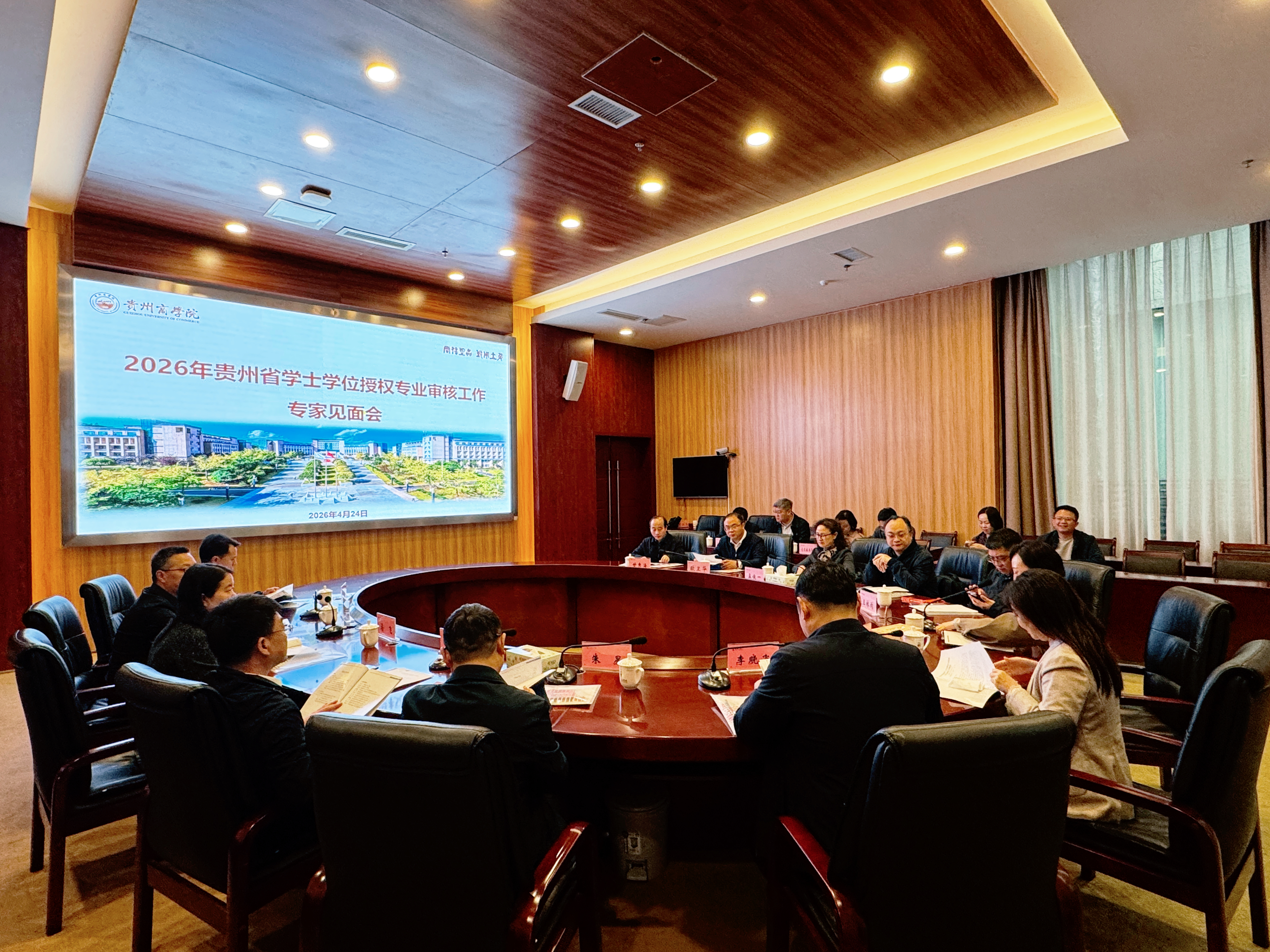 为深入推动我省本科教育高质量发展,严把学士学位授予质量关,4月24日,由贵州省学位办组织的2026年贵州省学士学位授权专业审核现场评审会在我校顺利召开,校党委副书记、校长肖小虹致欢迎辞,会议由校党委常委、副校长成蕴琳主持。