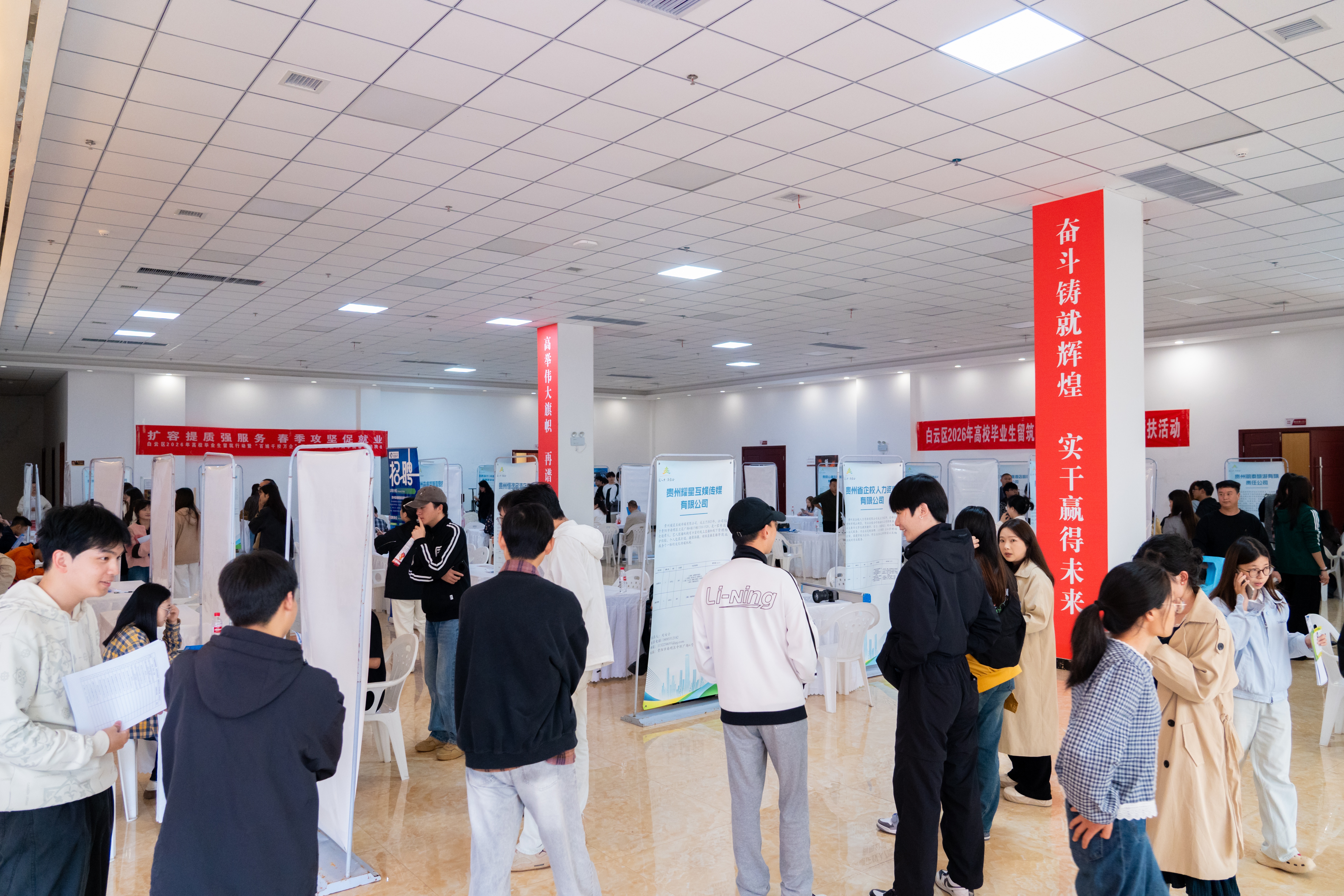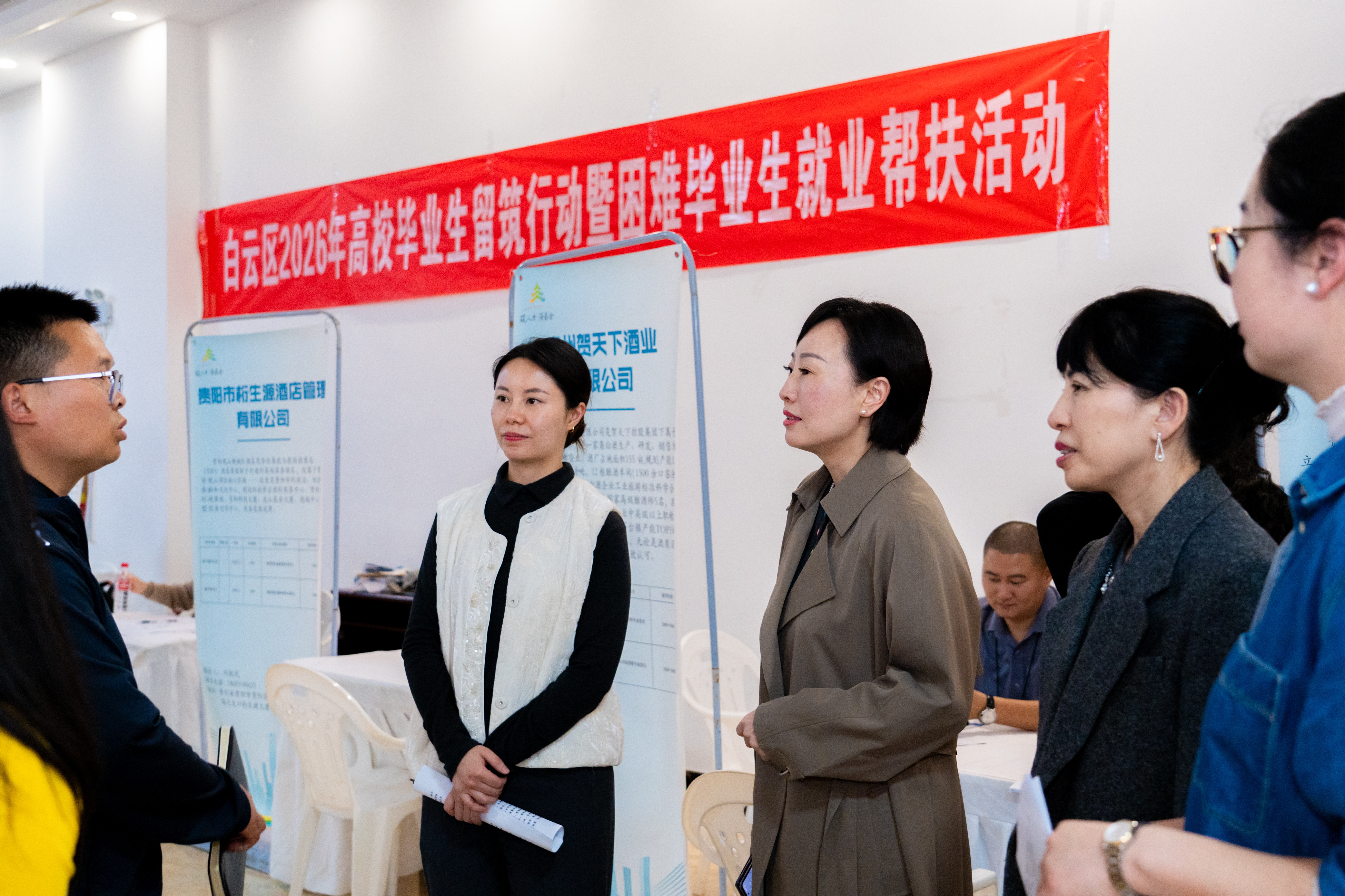 为深入贯彻落实高校毕业生就业工作部署,抢抓春季就业黄金期,精准帮扶困难毕业生实现就业,4月27日,由白云区人力资源和社会保障局、贵州商学院招生就业处联合主办的“白云区2026年高校毕业生留筑行动暨困难毕业生就业帮扶活动”专场招聘会在贵州商学院静心湖会议中心顺利举行。