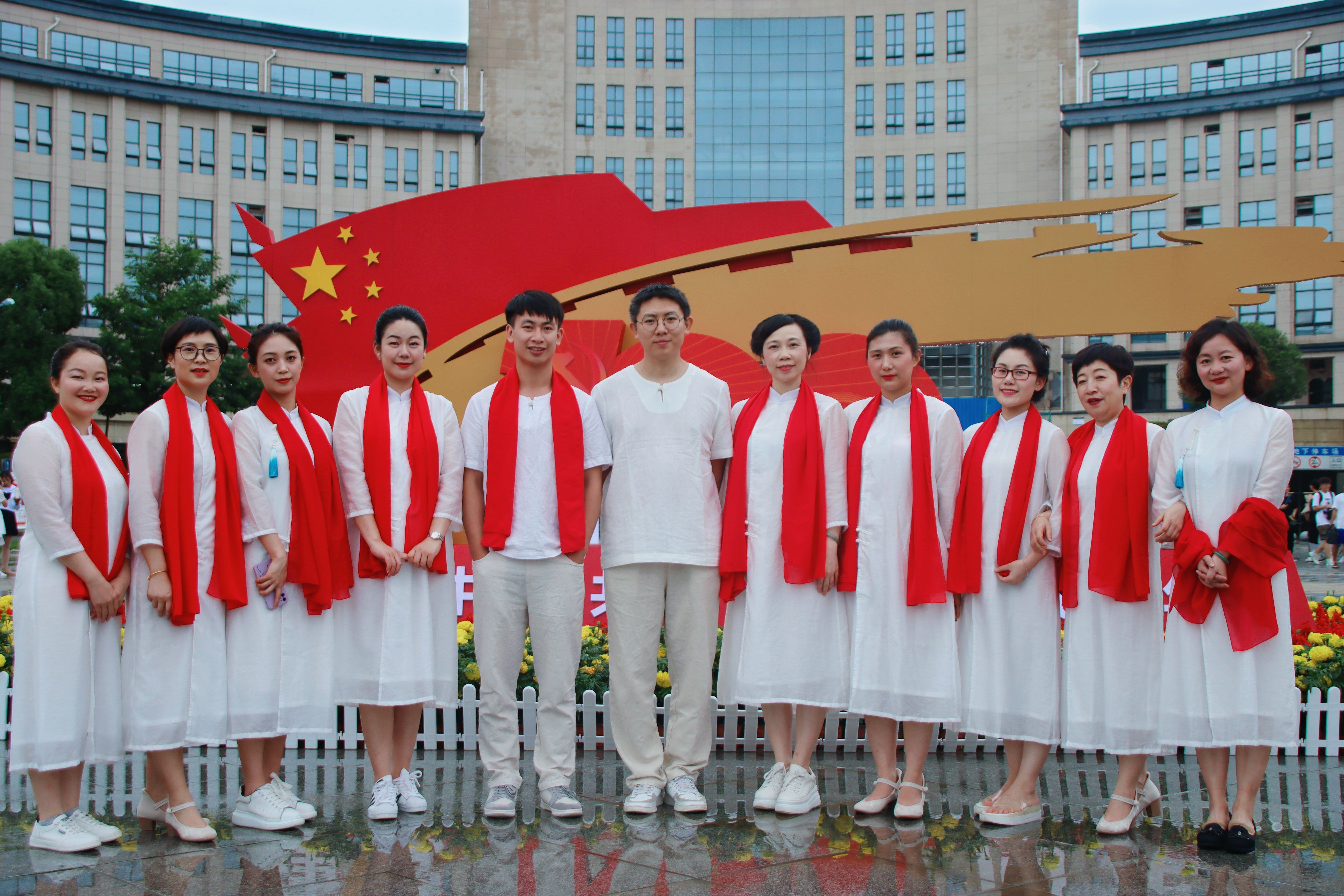 时间紧,任务重,11位统战成员代表一边兼顾本职工作,一边积极参与节目排练。同时,大家群策群力,对节目的背景、服装、道具及各种舞台设计一次次进行商议,目的只有一个——那就是在全院师生面前,在这欢庆的舞台上,大声说出党外人士的心声,与我们伟大的党同心同向,共襄盛举!