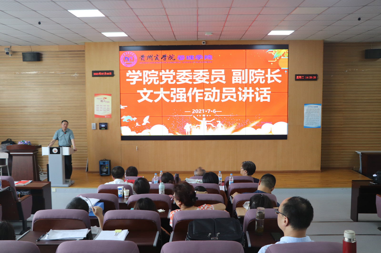 为进一步统一思想、凝聚共识,激励和动员全院教职工生忠诚履职、荣辱与共、担当作为,在决战决胜本科教学工作合格评估中全力以赴,7月6日下午,管理学院在尚智楼阶教3J103智慧教室召开本科教学工作合格评估攻坚誓师大会。学院党委委员、副院长文大强出席会议并作讲话,管理学院党总支书记田歆主持大会,全体教职工、学生代表参会。