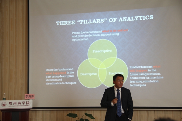 2018年7月5日上午,美国密苏里大学圣路易斯分校李海涛副教授应我院邀请在会议中心作了题为“基于数据驱动的优化决策在供应链中的应用 (Data-Driven Optimization and Its Applications in Supply Chains)”的学术报告。报告由财政金融学院负责人主持,各二级学院负责人、教研室主任及管理学院物流管理、市场营销教研室全体教师参加了讲座。
