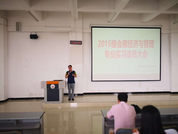 专业实习是重要的实践教学环节,为做好实习工作,明确实习的注意事项,2018年7月5日下午,旅游管理学院召开2015级会展经济与管理专业实习动员大会。旅游管理学院院长韩军、副院长翟运涛,会展教研室全体教师以及2015级会展专业全体同学参加动员大会。