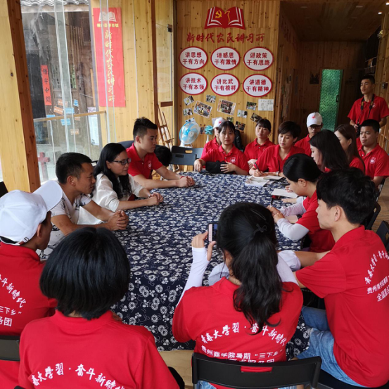 活动受到当地政府的高度重视和热情接待。桐梓县委副书记朱煜看望慰问了我院服务队师生,并与大家开展了交流座谈,他感谢全体队员为茅石镇中关村发展提出的创新性产业项目,鼓励同学们勤奋学习、勤于实践,为建设美丽乡村作贡献。茅石镇党委副书记曾亚春结合脱贫攻坚宣传片,从一个理念、两个文化、三个关键、四个依托以及五个目标全面阐述了茅石镇经济、社会、文化发展的基本情况。中关村村主任徐儒铭则从人口、地理、历史、产业及对外交流等方面介绍了这一美丽乡村的前世今生。