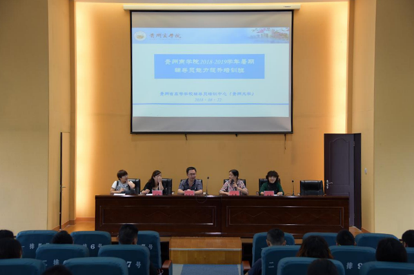 2018年8月23日上午,2018年贵州商学院辅导员素质能力提升培训班开班仪式在贵阳幼儿师范高等专科学校举行,学院副院长吕泉出席开班仪式并讲话,全体专职辅导员、兼职辅导员及学生处相关人员参加培训。培训班班主任由贵州大学学生处副处长余松担任。
