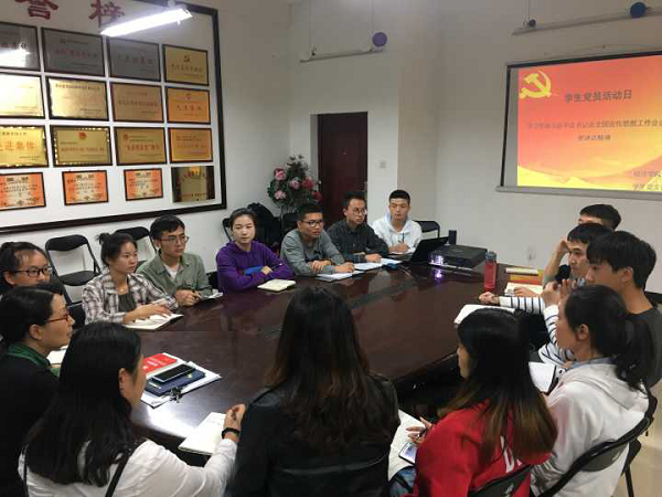 2018年9月18日,经济学院学生党支部在312活动室召开专题学习会议,学习习近平总书记在全国宣传思想工作会议的重要讲话精神,会议由经济学院党总支副书记付茂业主持,全体学生党员参加。