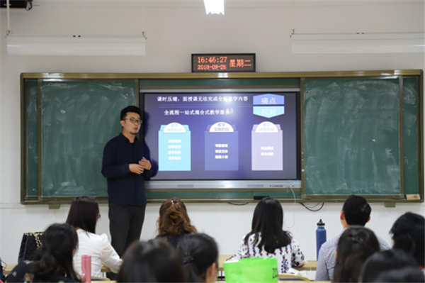 2018年9月25日,我部特邀外研社“U校园智慧教学平台”专业教师为全体教师进行培训。“U校园智慧教学平台”通过生动优质的学习内容、高效便捷的教学工具、无缝对接的多终端支持,一站式解决教、学、评、研、测等多方教学需求,为英语教学提供先进的教学手段。随着数字信息化在学院的深入普及,越来越多的教师、学生利用现代信息技术参与教学活动。我部致力于通过建设“U校园智慧教学平台”,将技术与教育的深度融合,从内容到形式上,给课堂教学带来深刻变革和创新应用,为学生创设更为丰富的学习机会,实现更大范围的学习协作与共享,从而完善了教师的授课方式、学生的学习方式,提高大学英语教学质量。