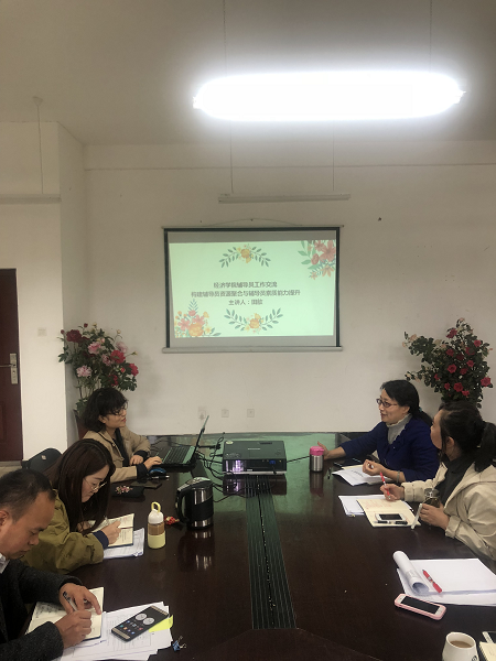 经济学院在迎接思政评估之际,为切实加强辅导员队伍建设,充分发挥辅导员在思想政治教育工作中的作用,强化以评促学、以评促建,2018年10月16日下午,邀请学生处副处长田歆进行专题培训,党总支书记张奇志、党总支副书记付茂业及全体辅导员参加。