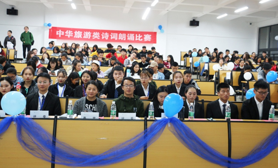 比赛最后,阮潇潇对活动进行了点评,鼓励同学们多多参加这种活动,培养自己的朗读能力,为以后的学习打好基础。活动丰富了同学们的课余文化生活,同学之间互相配合、互相支持,充分体现出了同心同德的团队精神!中国的诗词曲赋源远流长,是中华文明的集中体现,也积淀了丰富的旅游元素。大凡有成就的诗人,多是杰出的旅行家、优秀的旅游者。正如古人所言,读万卷书,行万里路。旅游旅行与诗词曲赋相伴而生、彼此促进、彼此融合。