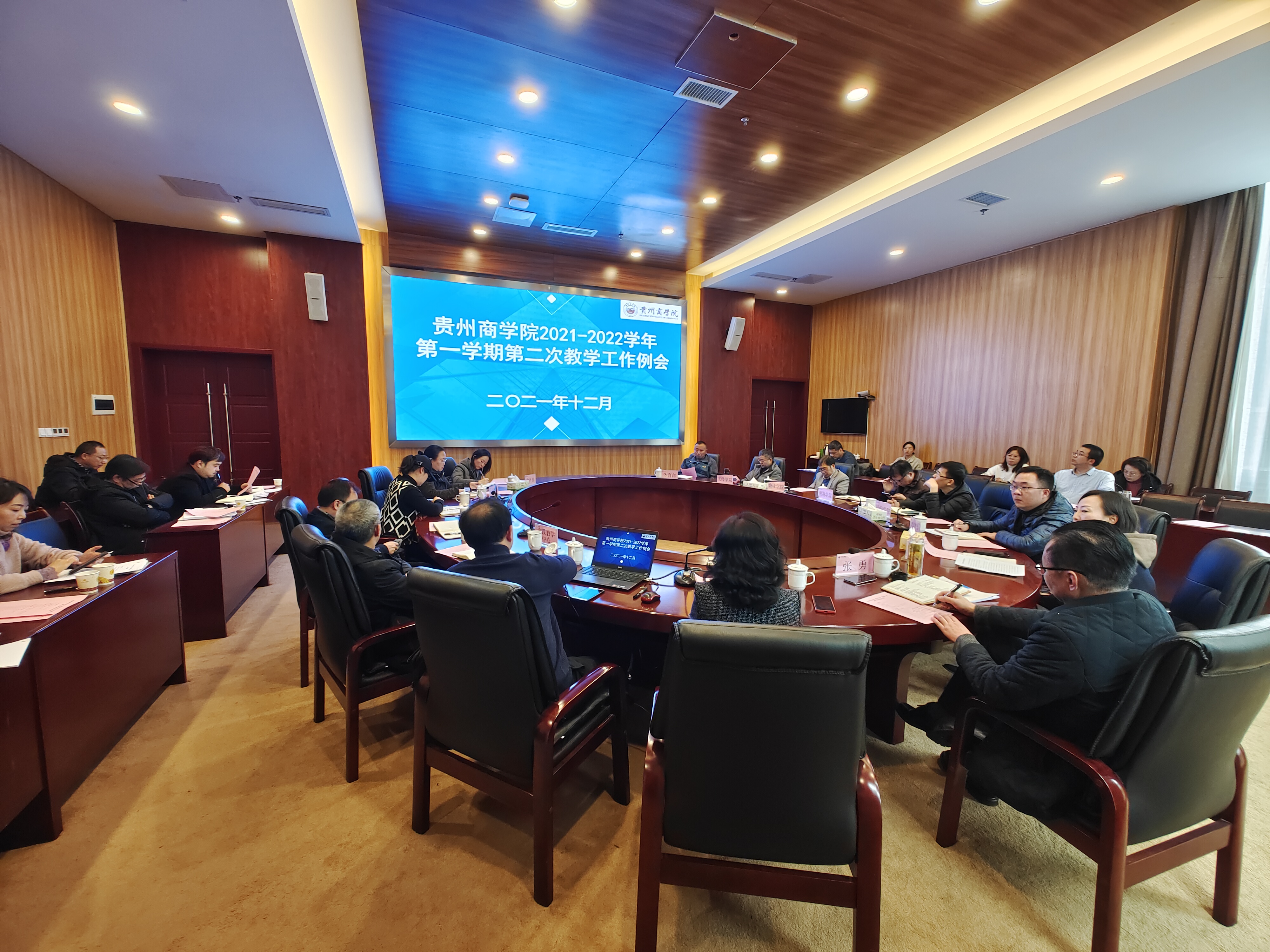 各教学管理部门负责人也分别在会上作了工作汇报并进行了工作安排。教务处对大学英语四、六级考试工作、期末考试相关工作、期末试卷归档要求、下学期课程安排、下学期教材征订、各类教学研究项目建设、管理、结题等工作要求、2022届毕业论文工作进度及中期检查、2021级人才培养方案的再次核对、校级教学成果奖申报、贵州省第二届教学创新大赛省级选拔赛组织准备工作进行了安排;教育评估中心对校内专业评估工作进行安排并通报课程评估情况。实践教学中心对下学期的实践教学课表、实践基地的建设、学科竞赛、学校工程中心建设事宜进行安排;通识教育学院汇报了下学期通识选修课的选课开展情况;计算机与信息工程学院对全国大学生数学竞赛的组织及培训情况进行了汇报。