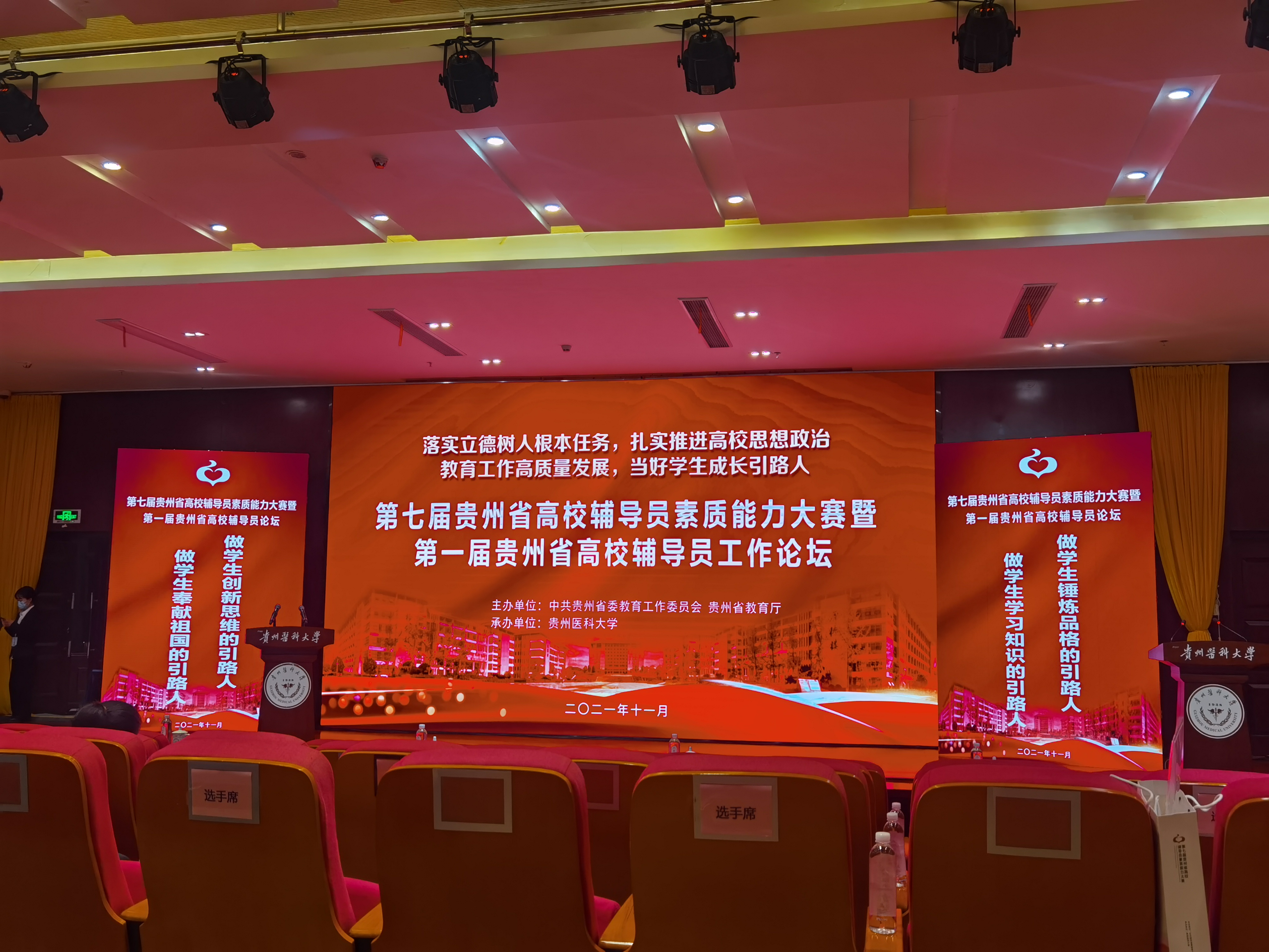 为深入学习贯彻习近平新时代中国特色社会主义思想,全面贯彻落实全国教育大会、全国高校思想政治工作会和学校思想政治理论课教师座谈会精神,落实《普通高等学校辅导员队伍建设规定》要求,省委教育工委、省教育厅于2021年11月22日至24日在贵州医科大学举办了第七届贵州省高校辅导员素质能力大赛。我校辅导员王芮通过校赛选拔,经过认真备赛,代表学校参加在本次省赛。经过激烈的角逐,王芮斩获了二等奖的佳绩,为我校创造了省赛最好成绩!