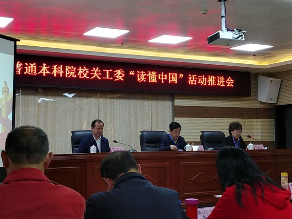 2019年5月9日,贵州省普通本科院校关工委“读懂中国”活动推进会在贵州安顺学院举行,贵州22所本科高校关工委负责人参加本次推进会,大会由教育厅关工委副主任吴段文主持,参观安顺学院关工委工作展板和大会交流由贵州大学选送的“我热爱这片土地”、贵州医药大学选送“医者仁心,薪火相传”等三家微视频和两家征文活动,省教育厅关工委主任陈光文对全省高校关工委提出要求,“读懂中国”之“我和我的祖国”是今年教育部在全国开展的一次爱国主义活动,各高校要提高认识,紧扣主题,精心组织,形式多样,按时完成“读懂中国”的微视频和征文评比活动,迎接我们伟大祖国建国70周年!