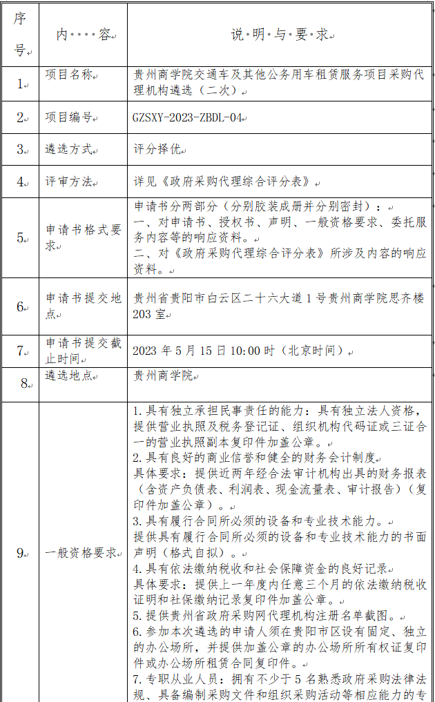贵州商学院交通车及其他公务用车租赁服务项目采购代理机构遴选公告 附件.docx