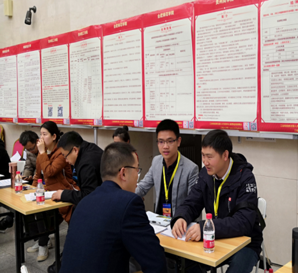 招聘会现场,我院老师与前来咨询我院人才引进政策的博士进行交流,详细地为他们介绍了我院发展情况、学科建设及高层次人才引进的相关政策和待遇,并真诚邀请博士们前来我院实地考察。