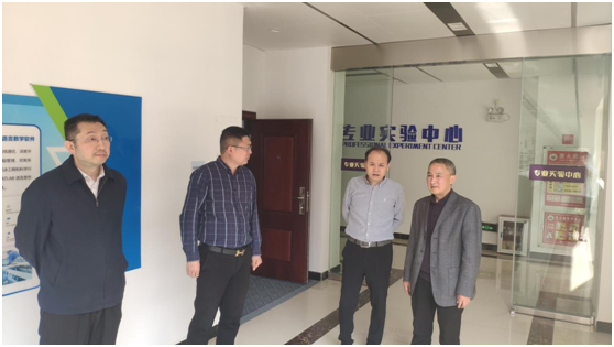 4月8日下午,校党委副书记、校长罗兵和现代物流研究所所长孙龙建、科研处副处长张庆华一行到新商科实验中心调研并指导工作。