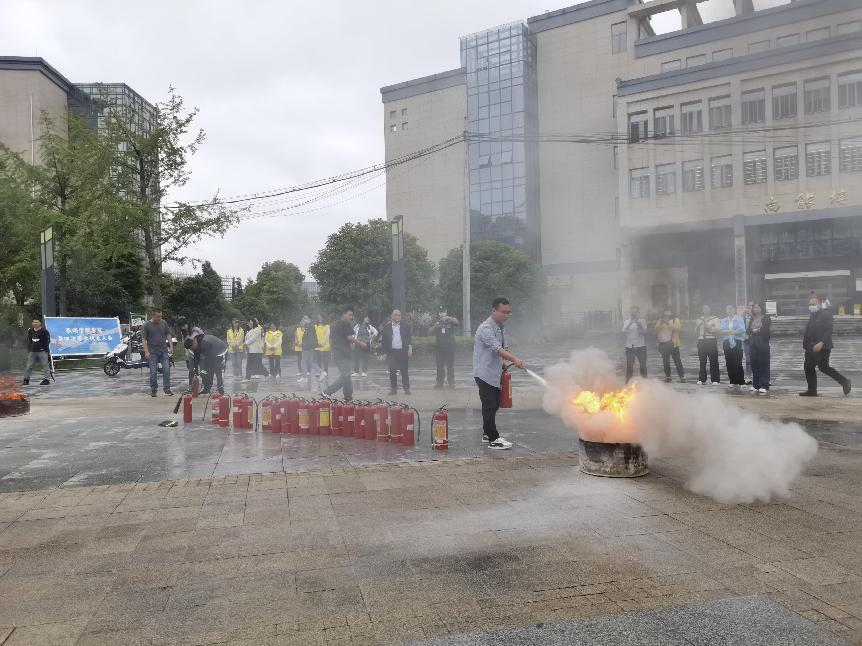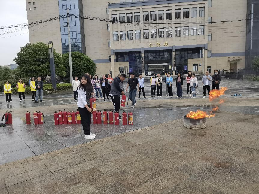 为认真贯彻落实省委省政府、省教育厅文件精神,根据《贵州商学院关于开展 2022 年“安全生产月"活动的通知》要求,我校结合实际情况,迅速抓部署落实工作。2022年6月10日下午14:00,保卫处、实践教学中心、管理学院组织教职工开展了应急安全知识普及活动和消防培训。在实践教学中心公共应急管理模拟实验室,管理学院公共事业管理教研室肖青相老师详细介绍了地质灾害、公共卫生、应急救援等安全知识,教职工参与体验互动。在学校商云广场,保卫处消防专职工作人员现场讲解示范灭火器使用方法和如何扑灭初期火灾,随后教职工们积极参与灭火实操演练。通过本次活动,增强了教职工安全生产及防范意识,提高了大家的消防灭火能力。